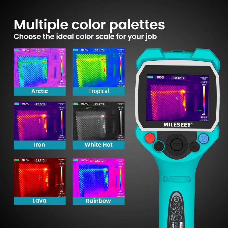 The MILESEEY TR256A Thermal Imaging Camera offers a powerful 256*192 IR resolution for detailed thermal imaging. It features a 3.5" LCD display with a screen resolution of 640*480. The camera boasts a wide field of view (HFOV) of 56°x42°, ensuring comprehensive coverage. Ideal for professionals, it handles temperatures from -20℃ to 450℃.