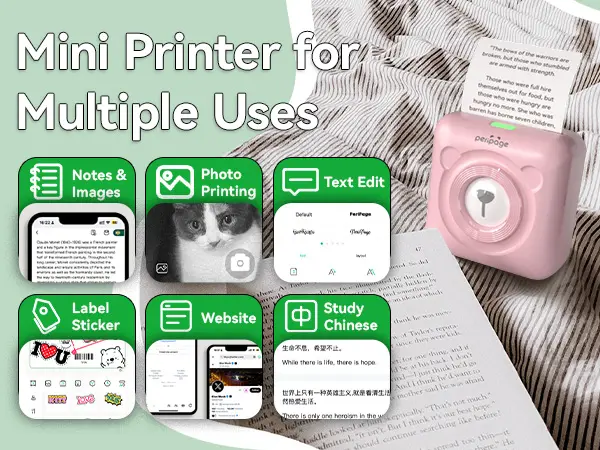 ·PeiPage Multifunction Printer-Supports a variety of functions, can print photos, labels, information, lists, records, QR codes, web page printing, OCR text recognition, AR photos, etc. The APP provides a variety of fonts and themes to make your printing more convenient and stylish.
