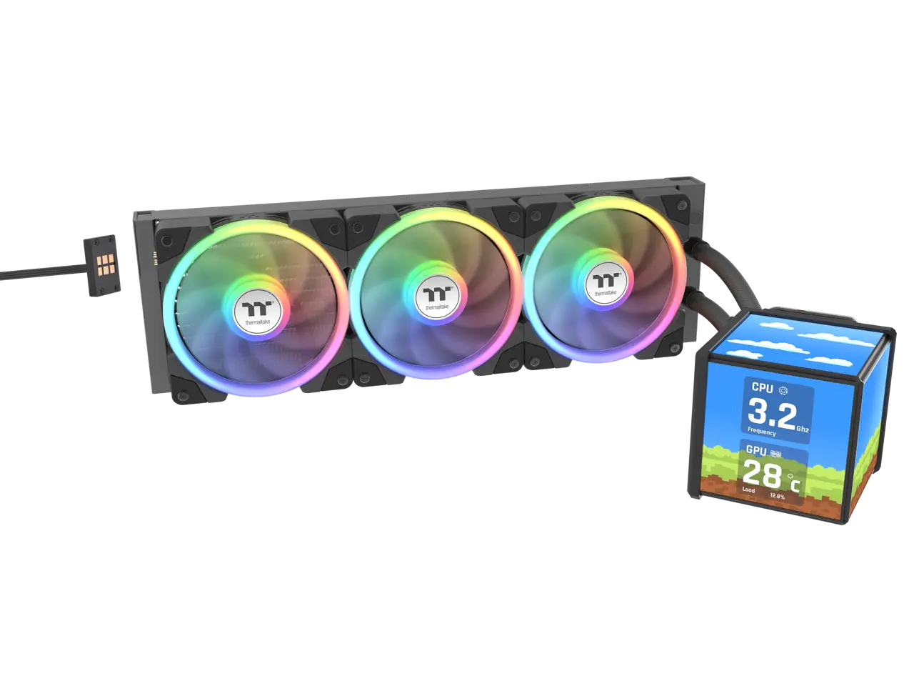 5. Thermaltake MINECUBE 360 Ultra CPU Liquid Cooler; Intel/AMD Compatible; 3x120mm 500~2000rpm SWAFAN EX ARGB; 360mm Radiator; MAGForce 2.0. 4x 3.95" TFT LCD Screens; Swappable Fan Blades; TT LCD Screen Control; Black; CL-W481-PL12SW-A