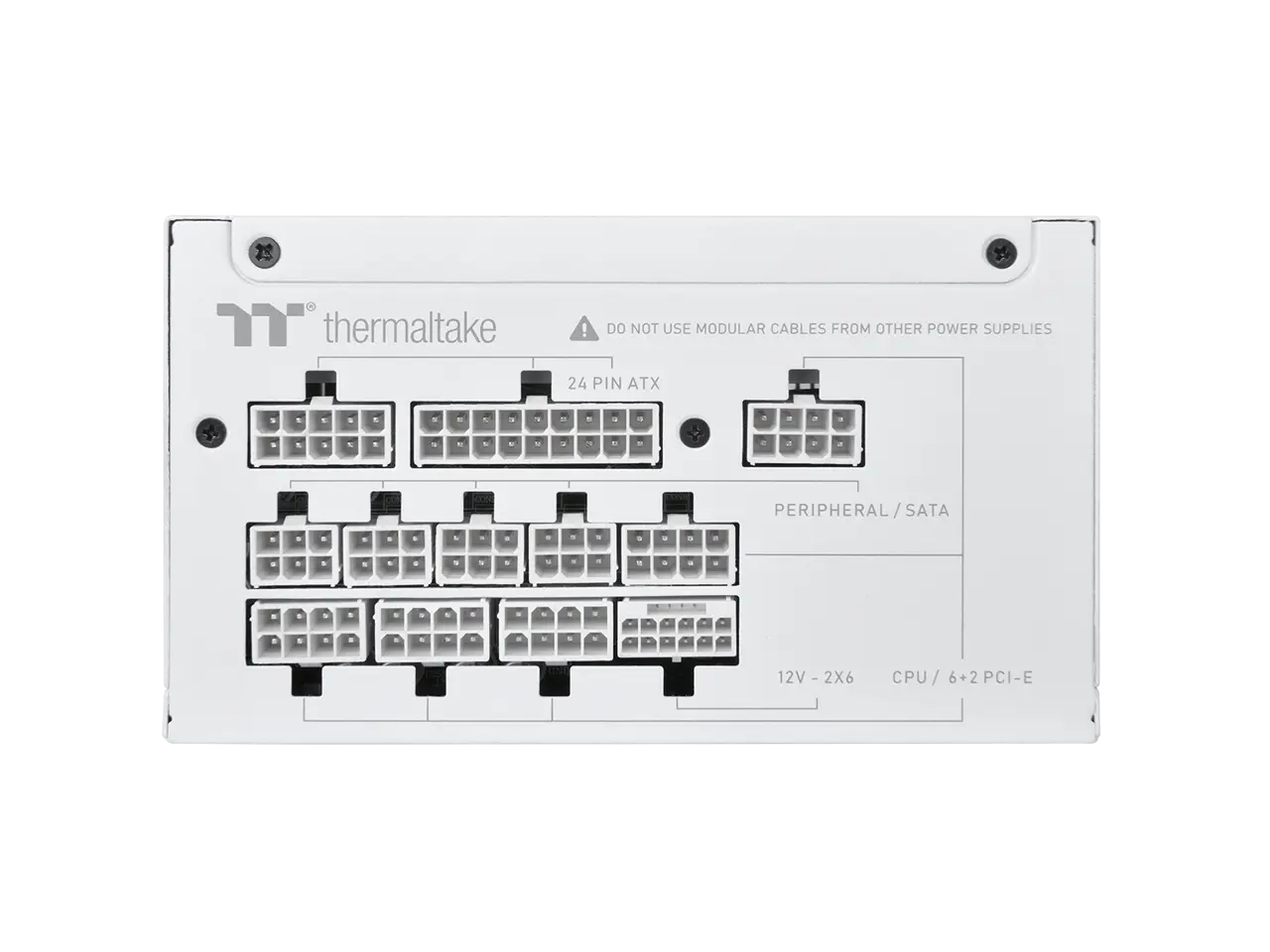 Thermaltake Toughpower GT 1000W; ATX 3.1; Native PCIe 5.1 12V-2x6; Full Modular; Flat Cables; Color Matched Connectors; Japanese Main Capacitors; 80 Plus Gold Certified; 140mm; Snow; PS-TPT-1000FNFAGU-W