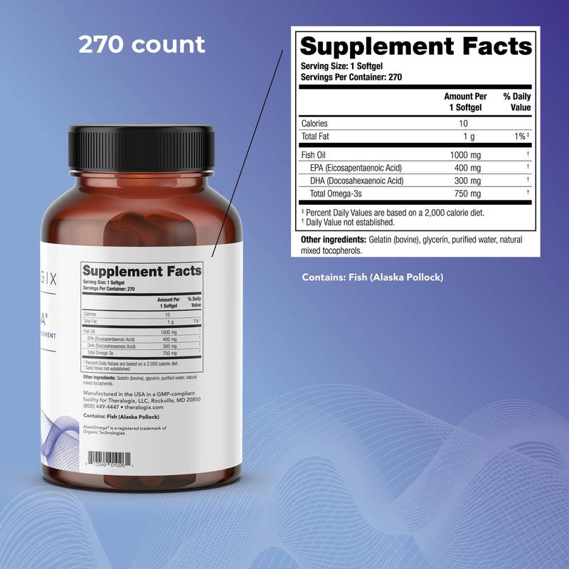 TherOmega features sustainably sourced omega-3 fish oil, offering a concentrated dose of DHA and EPA for heart, immune, brain, joint, and eye health.*