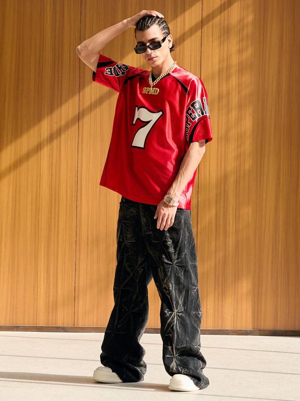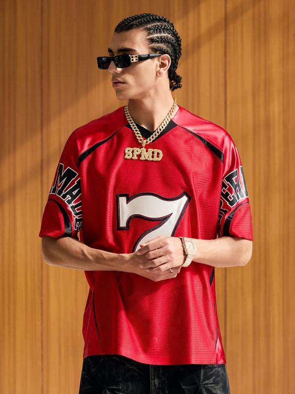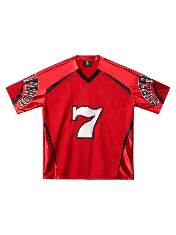 •    Design Elements: Bold "7" number print, gold chain detail, and stylish lettering on sleeves