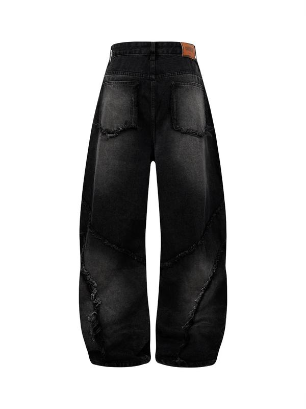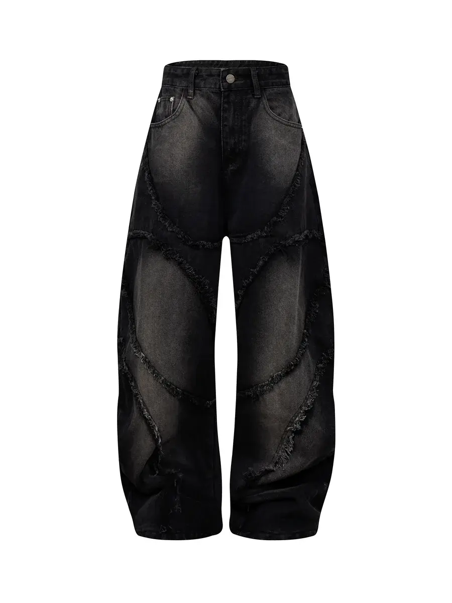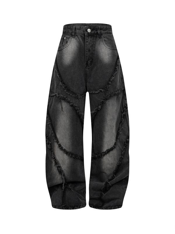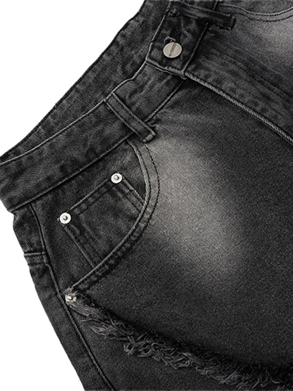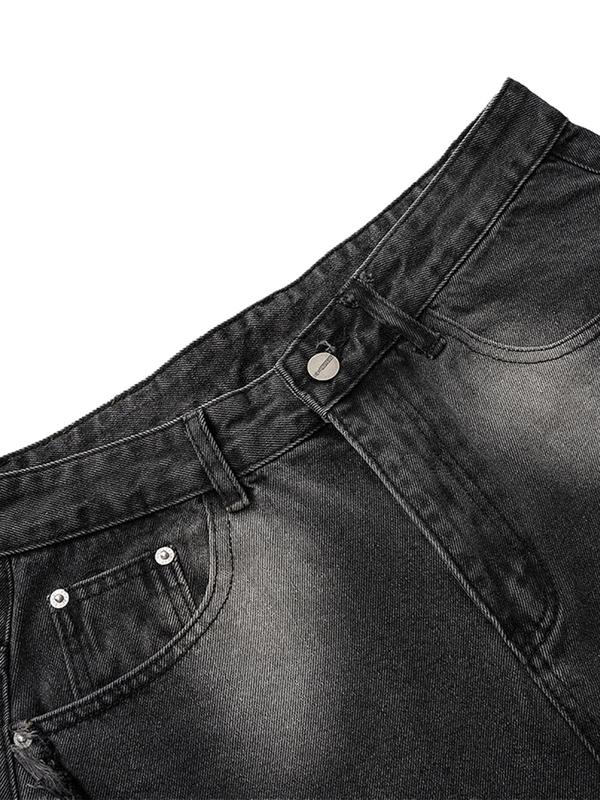 Thesupermade Washed Distressed Raw Edge Scimitar Jeans