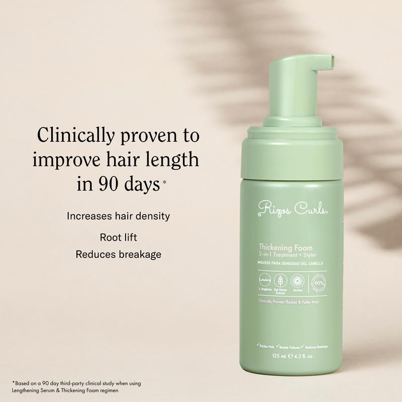 ·Improves overall hair health by 75% in 90 days* *Based on a 90 day third-party clinical study when using Hair Lengthening Treatment Serum and Thickening Foam regimen