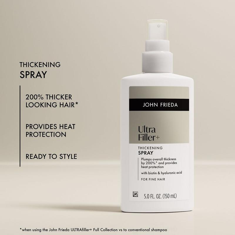 Does your hair feel fine or flat? Meet John Frieda ULTRAfiller+ Thickening Spray, a lightweight volumizing spray that visibly plumps hair for a fuller look without heaviness or crunch.