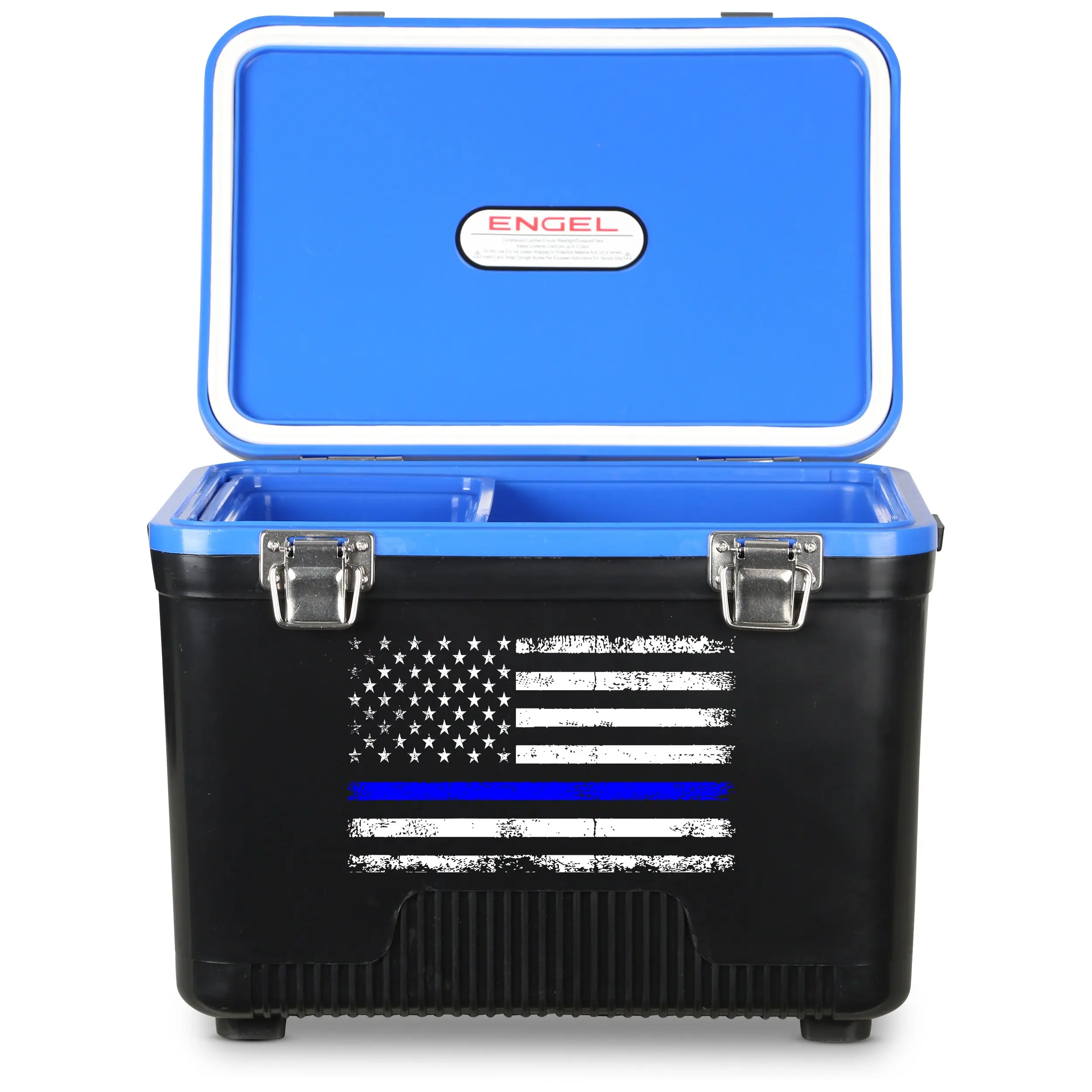 Show your support for law enforcement with the Engel UC7 "Thin Blue Line" Cooler, proudly featuring the Thin Blue Line American Flag. Built tough for those who serve, this rugged and compact cooler is the perfect companion for long shifts, patrols, or any day on the move.