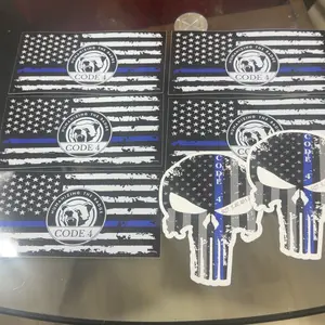 5. 5 Piece Thin Blue Line Stickers, (Free Red Card & 2 Skulls) Code 4 Vinyl Waterproof Decals Truck Decal