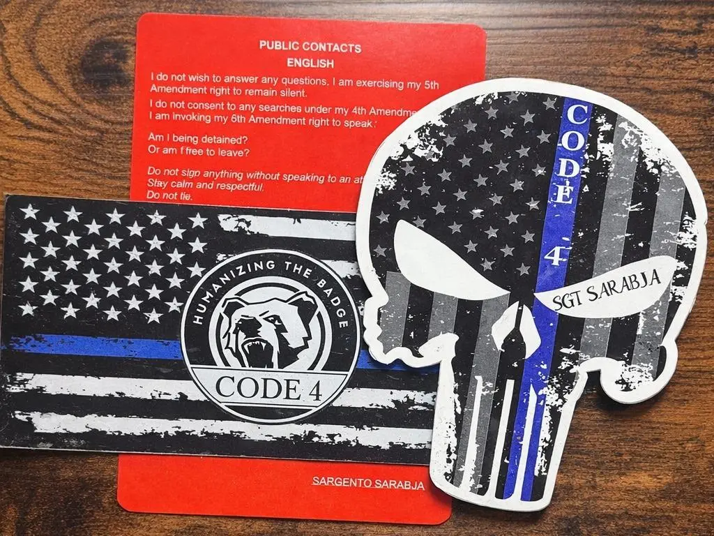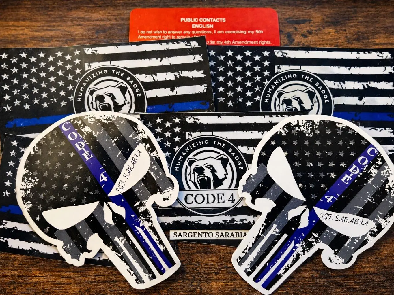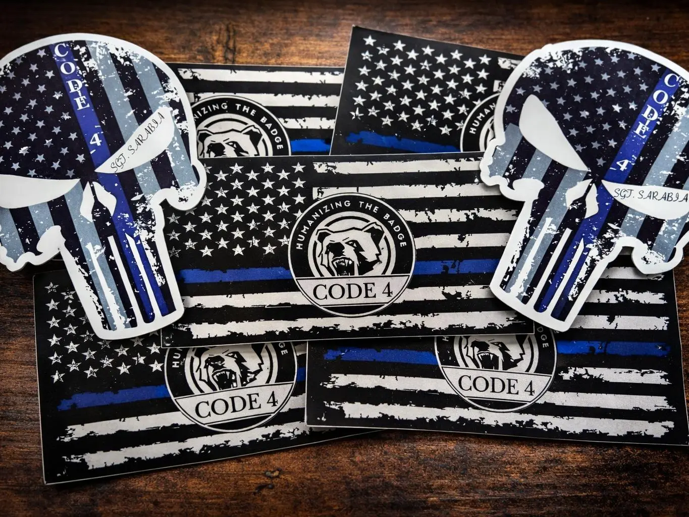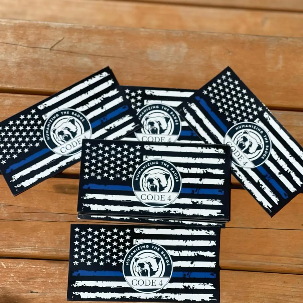 5 Piece! Bumper Sticker 6X3” Thin blue line Code 4, Humanizing the Badge! Show your support to your police department by displaying the thin blue line flag. ** One per Order**