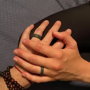 Firm yet pliable ring. Very comfortable for working out or just all day. Customer service is excellent with exchanging for a bigger size since the first one I ordered was too snug. The next size up fits perfectly.