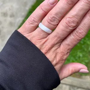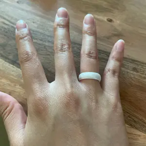 This is exactly what I wanted!! 🤍 When I’m working outside, traveling, swimming, kayaking, shopping @ busy holiday time, anytime I don’t feel like it’s wise to wear my wedding rings because they could get lost, damaged or stolen this ring is perfect for! It looks so pretty yet is very sturdy & strong! The width is perfect, the color is perfect, the material is so soft & subtle that I don’t even feel it in my finger! Super comfy! Highly recommend!