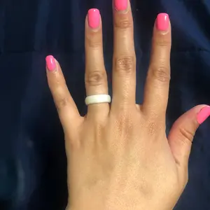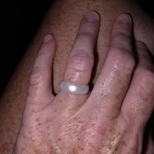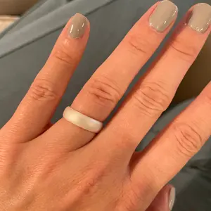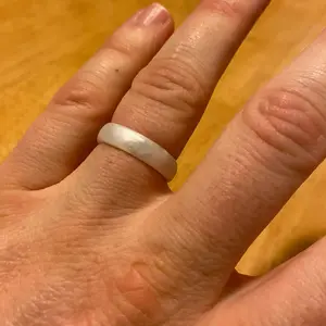 My wedding and engagement rings are absolutely gorgeous mother of pearl and diamond, but that makes them more fragile than traditional rings. I work as a chemist, which means it's gloves on and off all day, so I got this ring for day-to-day wear. I ordered a half size down and it fits great. It's so comfortable I forget it's even there. Never gets sweaty, stays on, washes nicely (I left it on when repotting my plant and got a bit nervous that the dirt would abrade the finish but the ring looks the same). The pearly finish is reminiscent of my fancy rings, so it doesn't feel like I have to choose between function and fashion. Definitely would recommend!