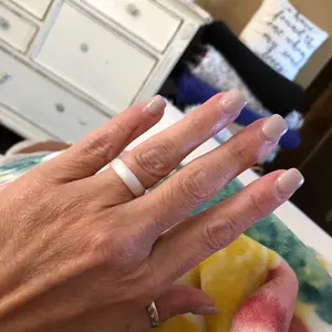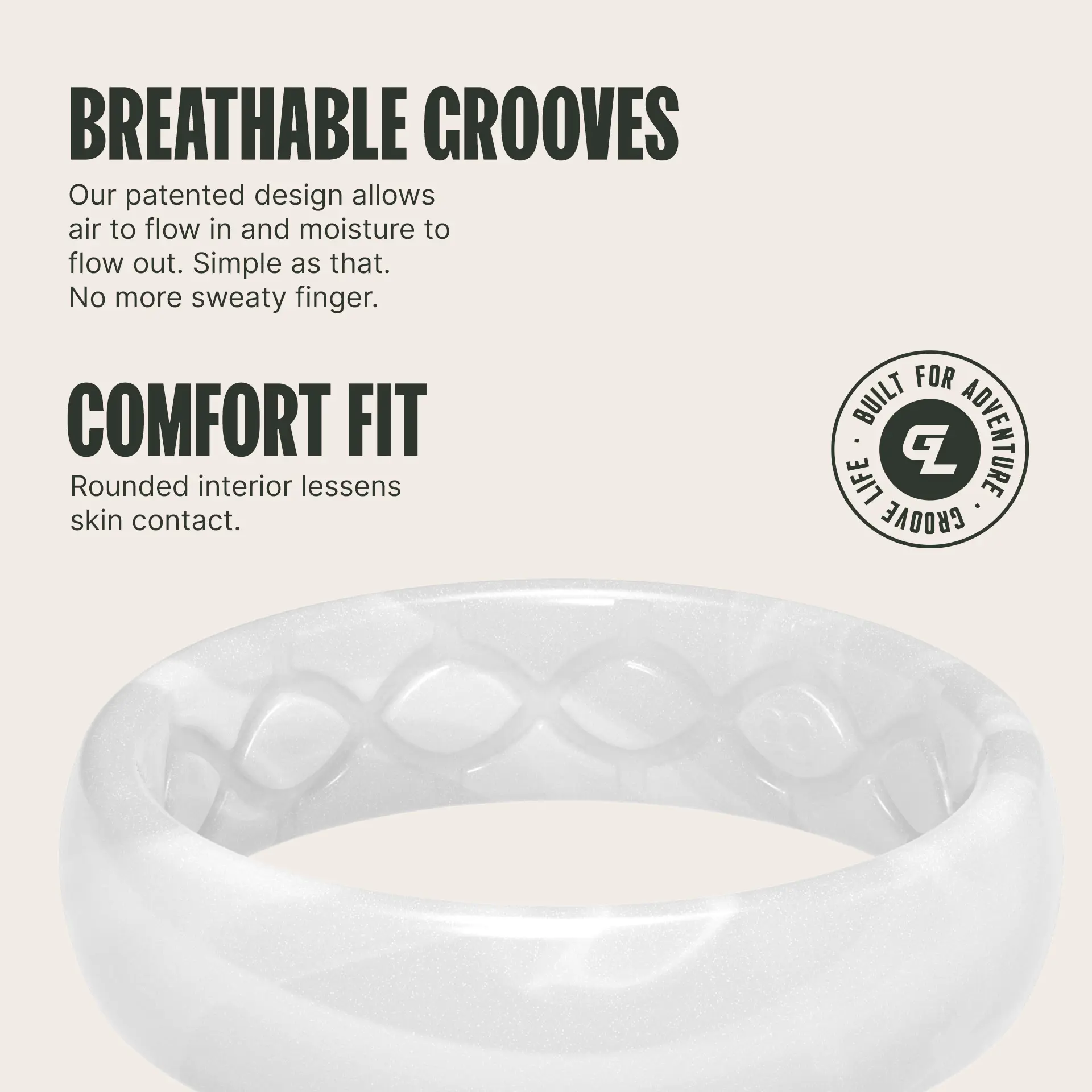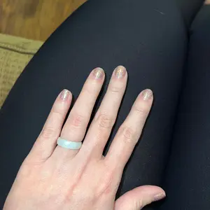 Beautiful ring! It was difficult to choose just one because I love so many of the other designs. Started with this one because it goes with everything. Love wearing for everyday wear, especially when working out/lifting weights. So comfortable. I made the right choice for my first of many Groove Life rings! 🤍 I did go up one size to allow for swelling fingers when working out plus it’s grippy and I didn’t want it too tight.
