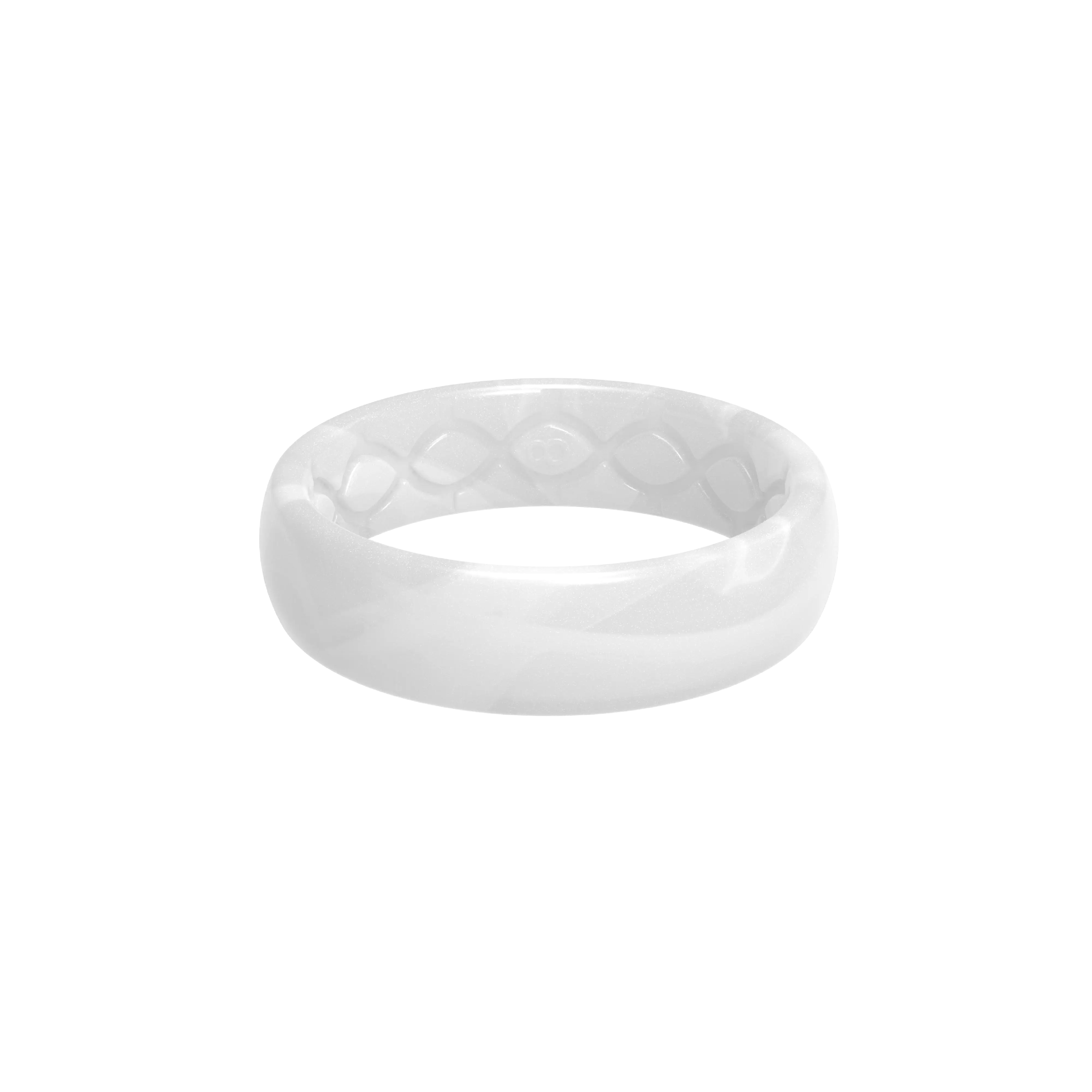 I am a special needs parapro and have to change my little ones at school and I don’t want to scratch them with my wedding ring so, I bought the solid pearl thin ring and I LOVE it! I wash my hands several times a day, I have to put gloves on and off for changing the kids, and it stays on great! Also, it looks so pretty on!!!