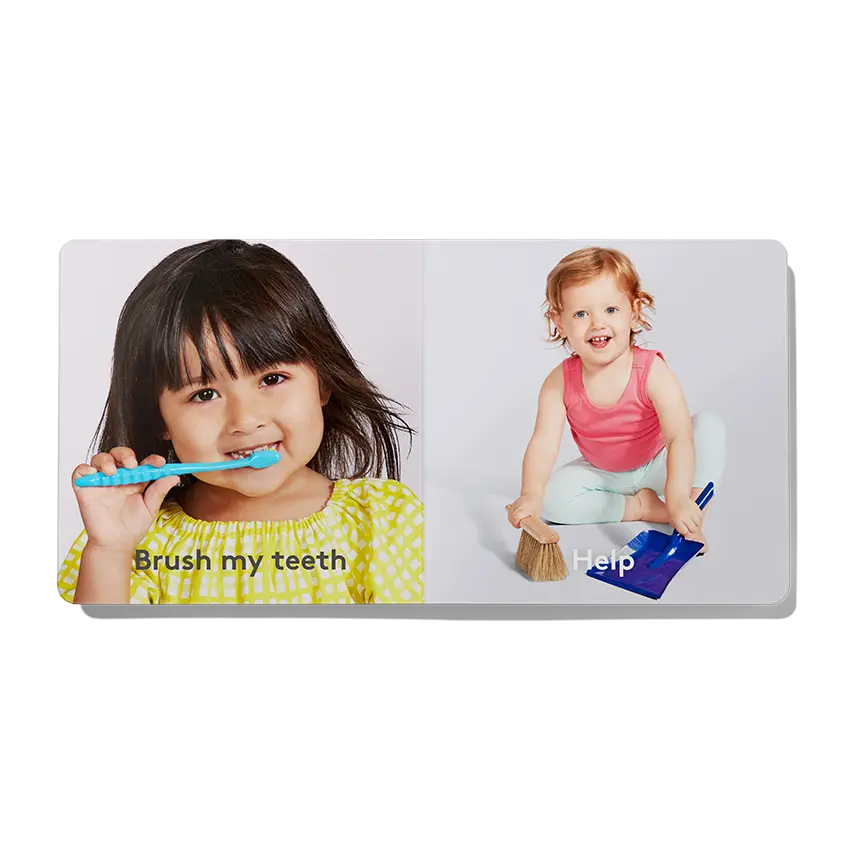 My toddler and I love reading this book together. The only thing I don’t like is the page where the two kids ‘kiss’. I explain to my kid that they are ‘whispering’ instead. Once my child is old enough to read, I will sell this book. Aside from that page, this is a great book with pictures of real kids doing every-day things that my child can relate to.
