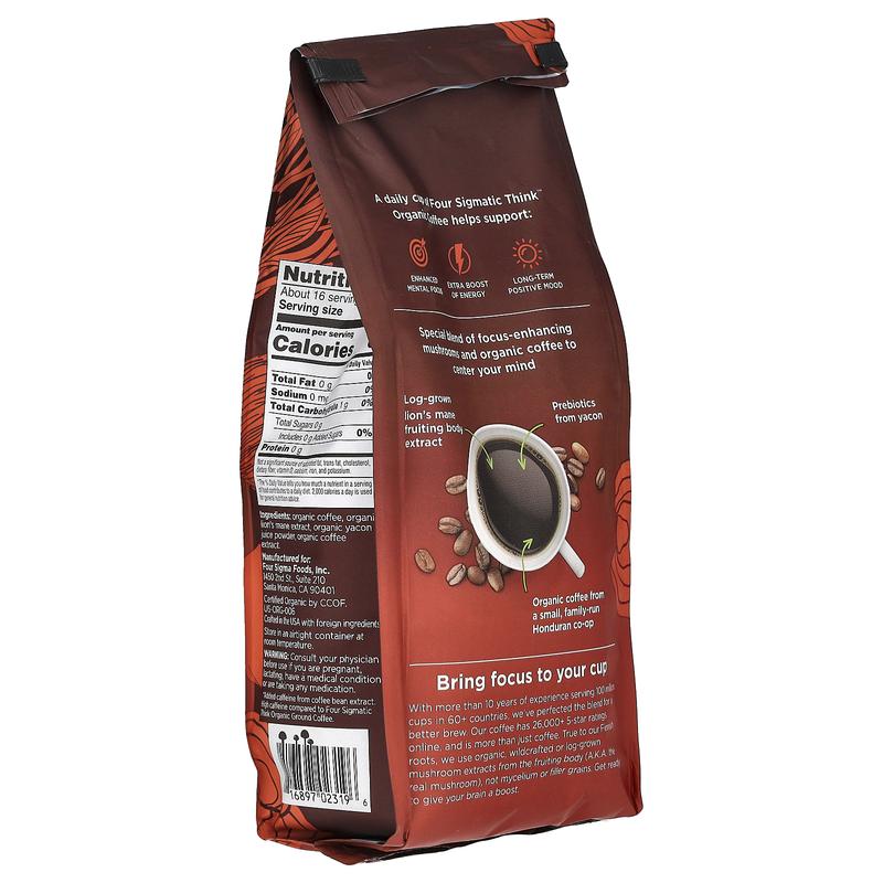 5. Four Sigmatic Think, Organic High Caf Coffee with Lion's Mane Mushroom & Yacon, Ground, Dark Roast, 12 oz (340 g)