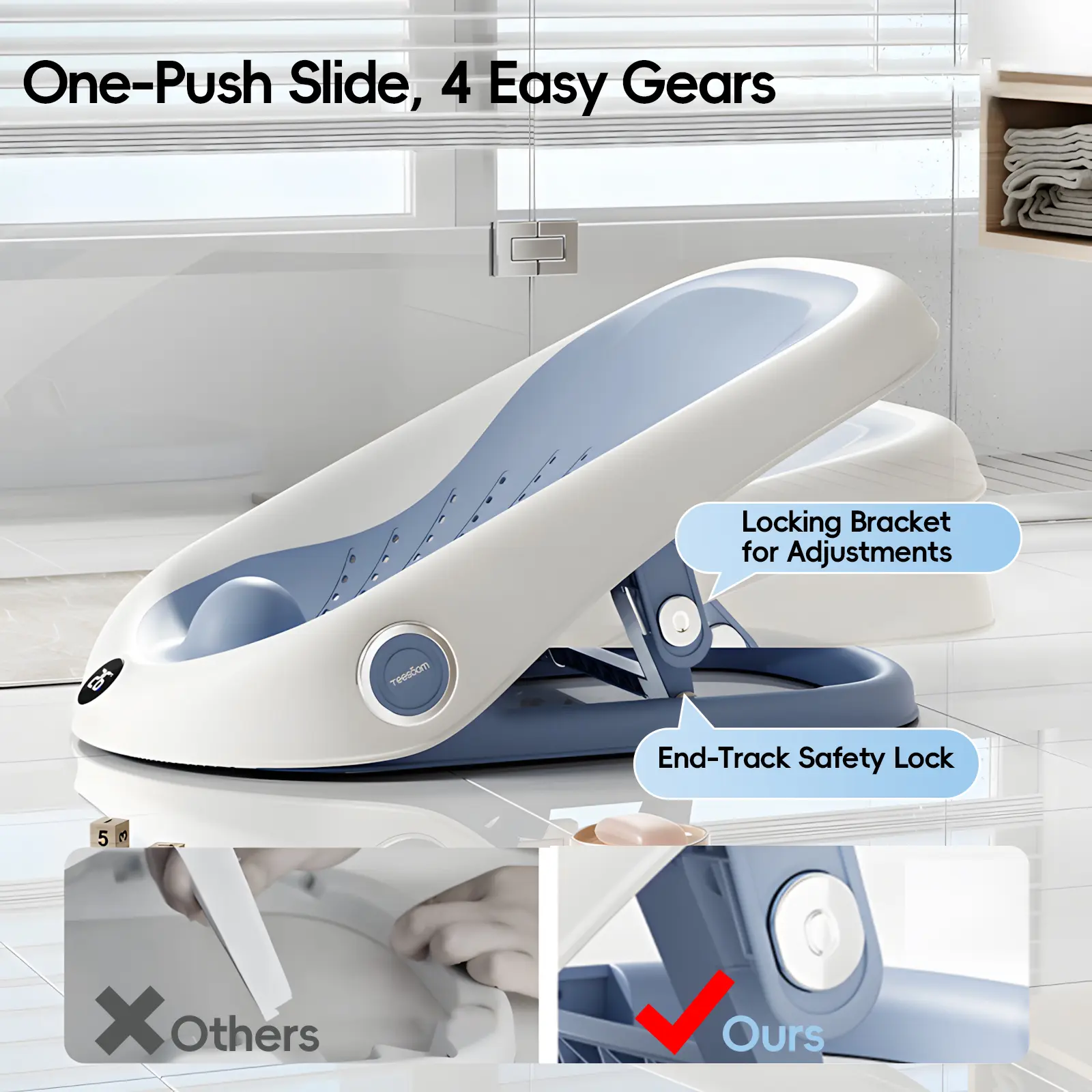 With an 8.38-inch elevated design, the recliner prevents slipping. The soft silicone surface and thoughtful design offer both comfort and security. This makes bath time stress-free for both baby and parents. Enjoy a comfortable and secure environment during bath time.