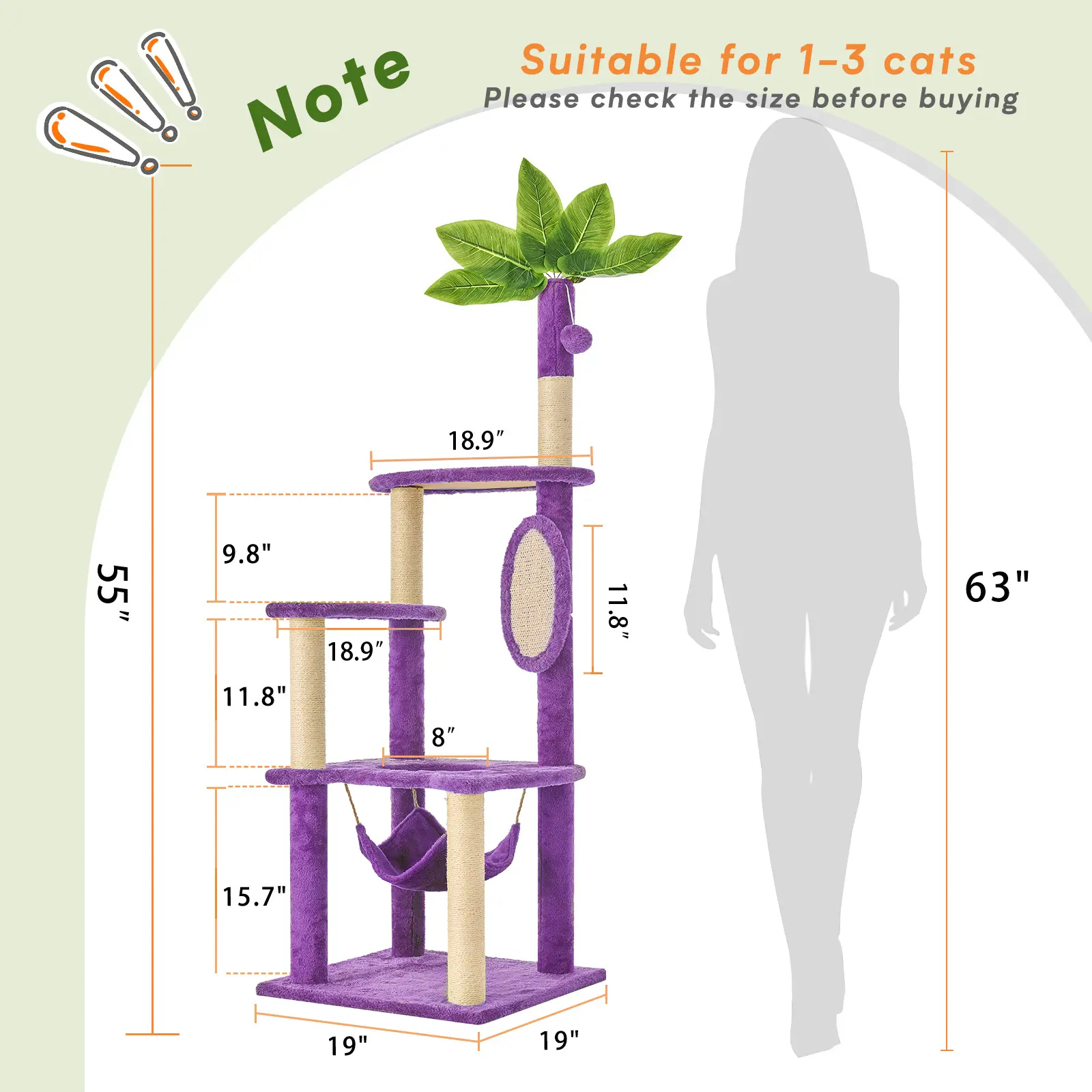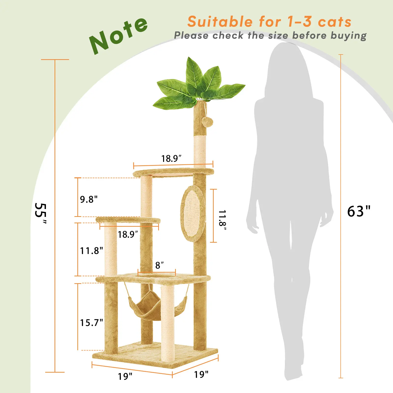 [Unique Leaf Shape Design]: The unique leaf design is not only a simple cat tree, but also a plant ornament, which can be well integrated into home. The cat tree is covered with high-quality 600g skin friendly plush. There is enough space for big and small cats to play.