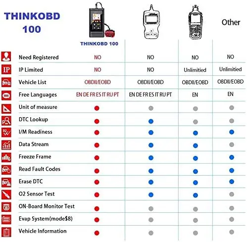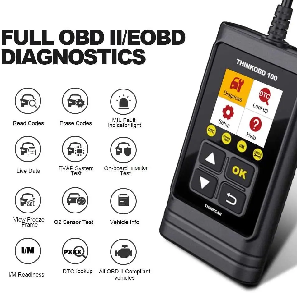 Featuring full OBD2 functions, easy operation, compact design, 1.77” TFT color screen etc. Thinkobd 100 car code reader with a budget friendly price, it’s the best solution for any DIYers to perform basic car maintenance. It works on most 1996 and newer US-based vehicles that are OBDII compliant (OBDII protocols: KWP2000, ISO9141, J1850 VPW, J1850 PWM and CAN).
