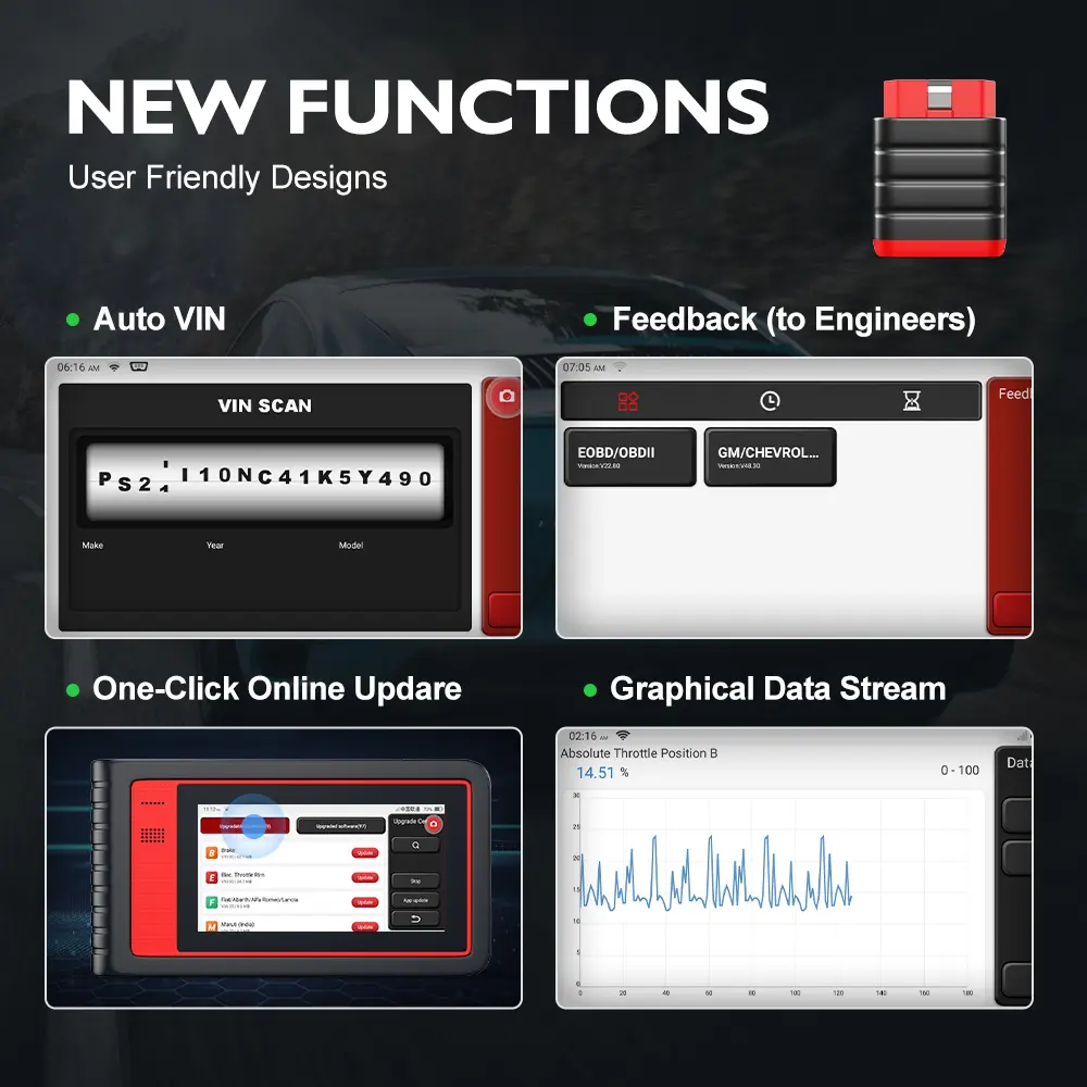 ·Functional Tests: The diagnostic tool performs functional tests to retrieve diagnostic information such as trouble codes and live data for various vehicle control systems.