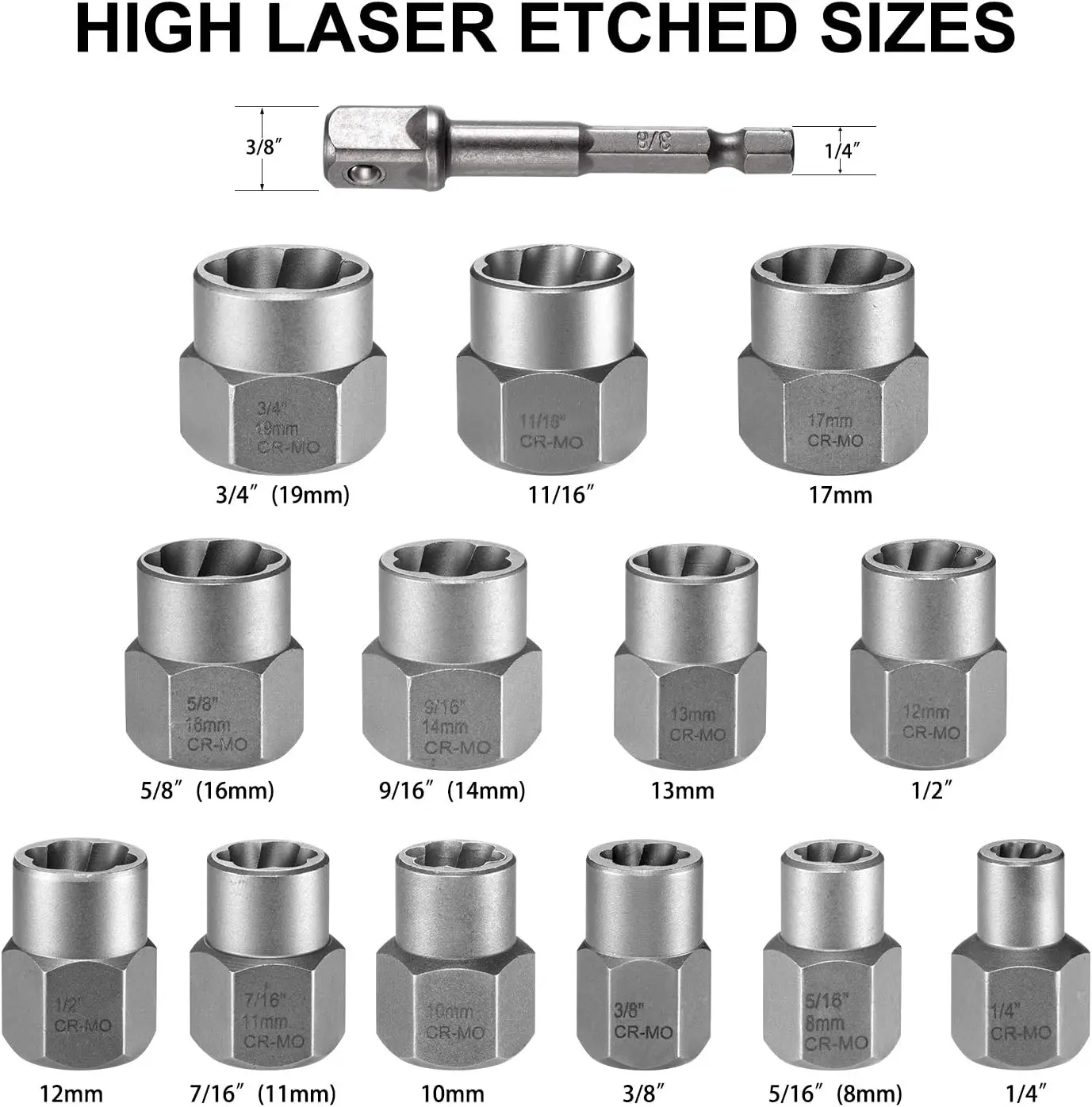 ·Count: 13+1-count 3/8-inch drive bolt remover set.