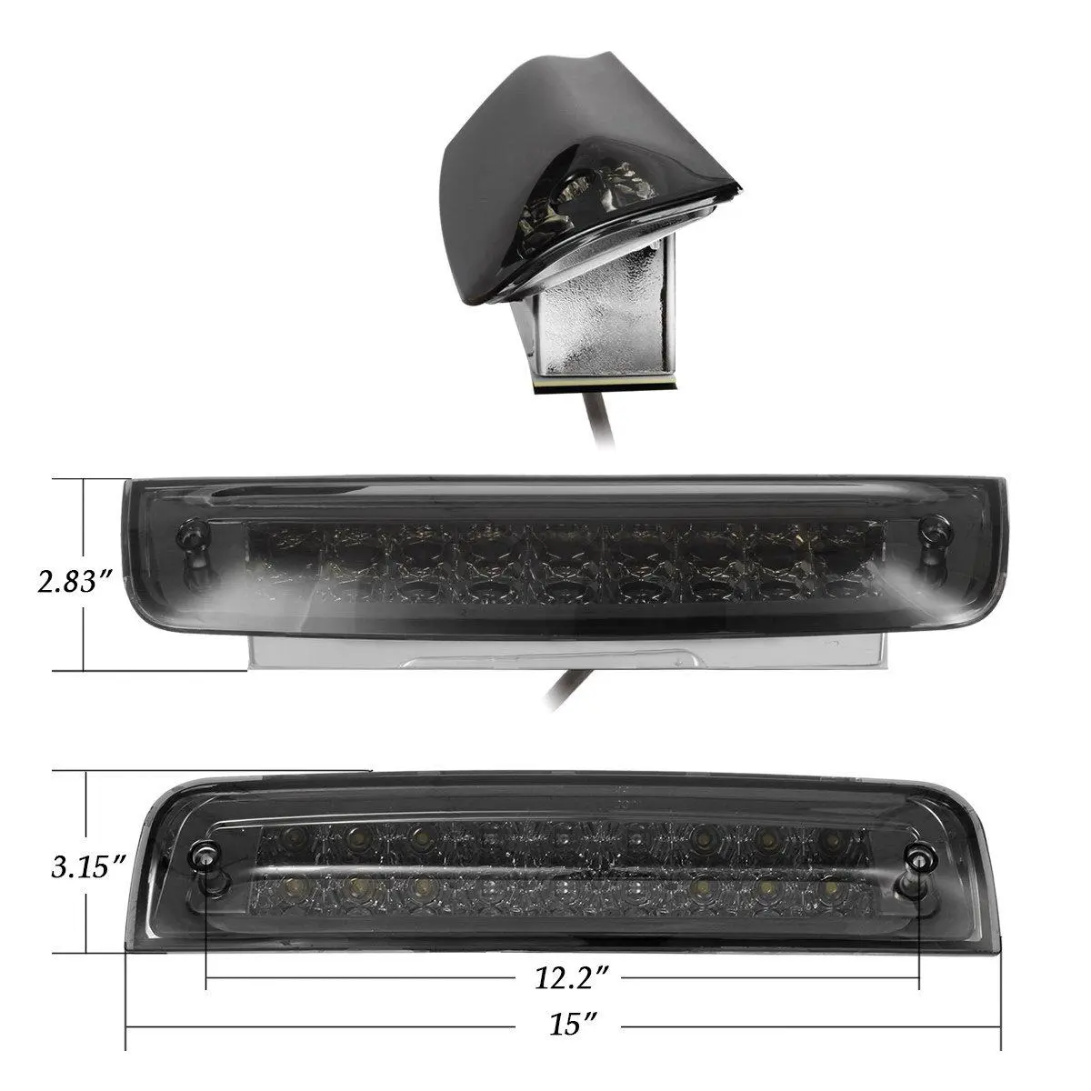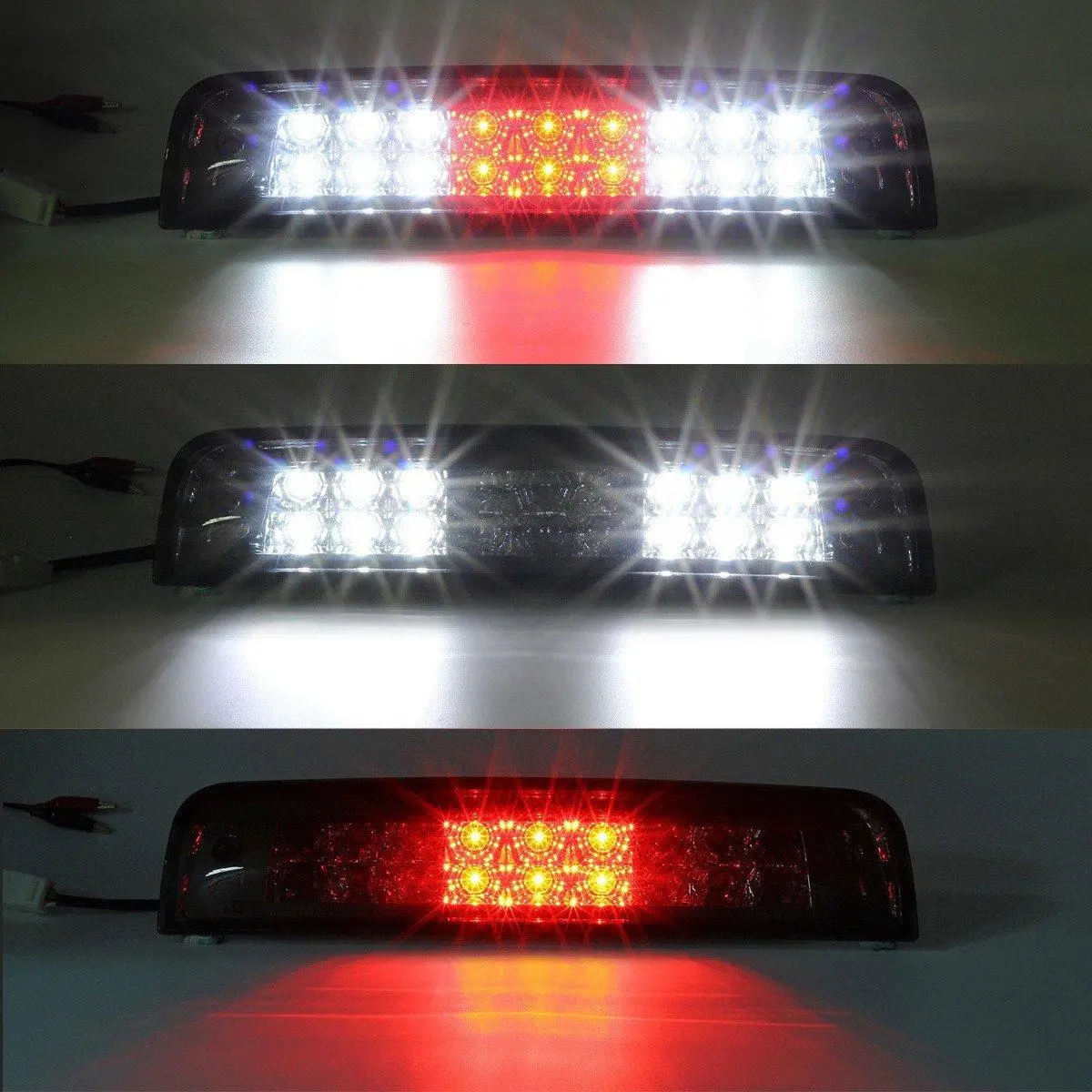 Pack Includes: 1pc Smoke Lens (9xRed+18xWhite) LED 3rd Third Brake Light; Please check the hole distance first before you buy;