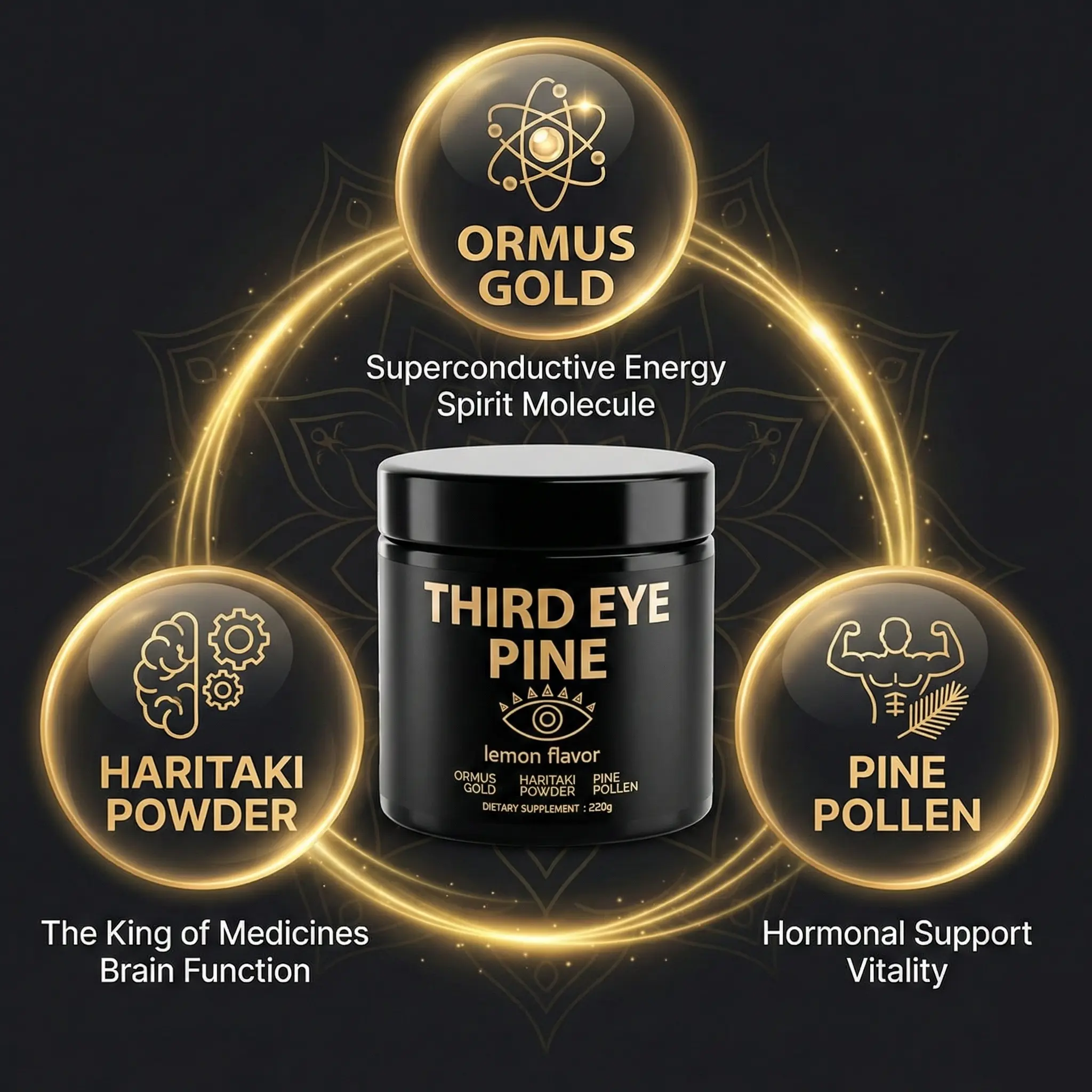 Third Eye Pine is a holistic herbal blend crafted for those who are deepening their spiritual journey, meditation practice, and inner awareness. This unique powder mix combines Ormus Gold, Haritaki Powder, and Pine Pollen Extract—three ingredients traditionally used in spiritual and wellness communities to support clarity, presence, and energetic alignment.