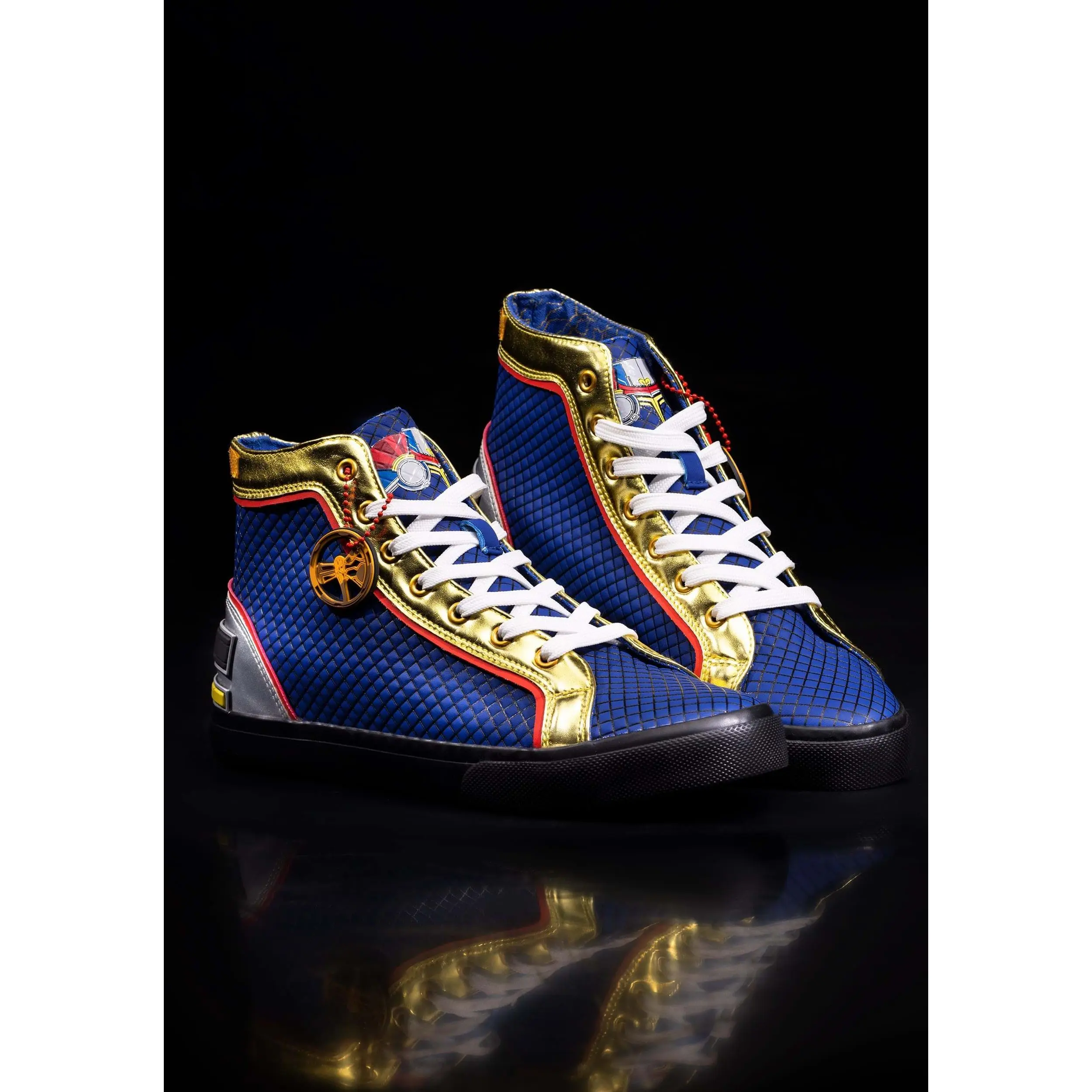 Thor doesn't need shoes to fly, but you might feel a little light on your feet with these officially licensed Marvel shoes. The gold, red, and blue color scheme match Thor's beautiful celestial armor. You will love the graphics on each shoe tongue as well as the rubber chains on the sideβcementing your Godhood status. If you want to move like the God of Thunder, hop on the next Bifrost beam and pick up theseΒ Marvel Thor God of Thunder Shoes for Adults.