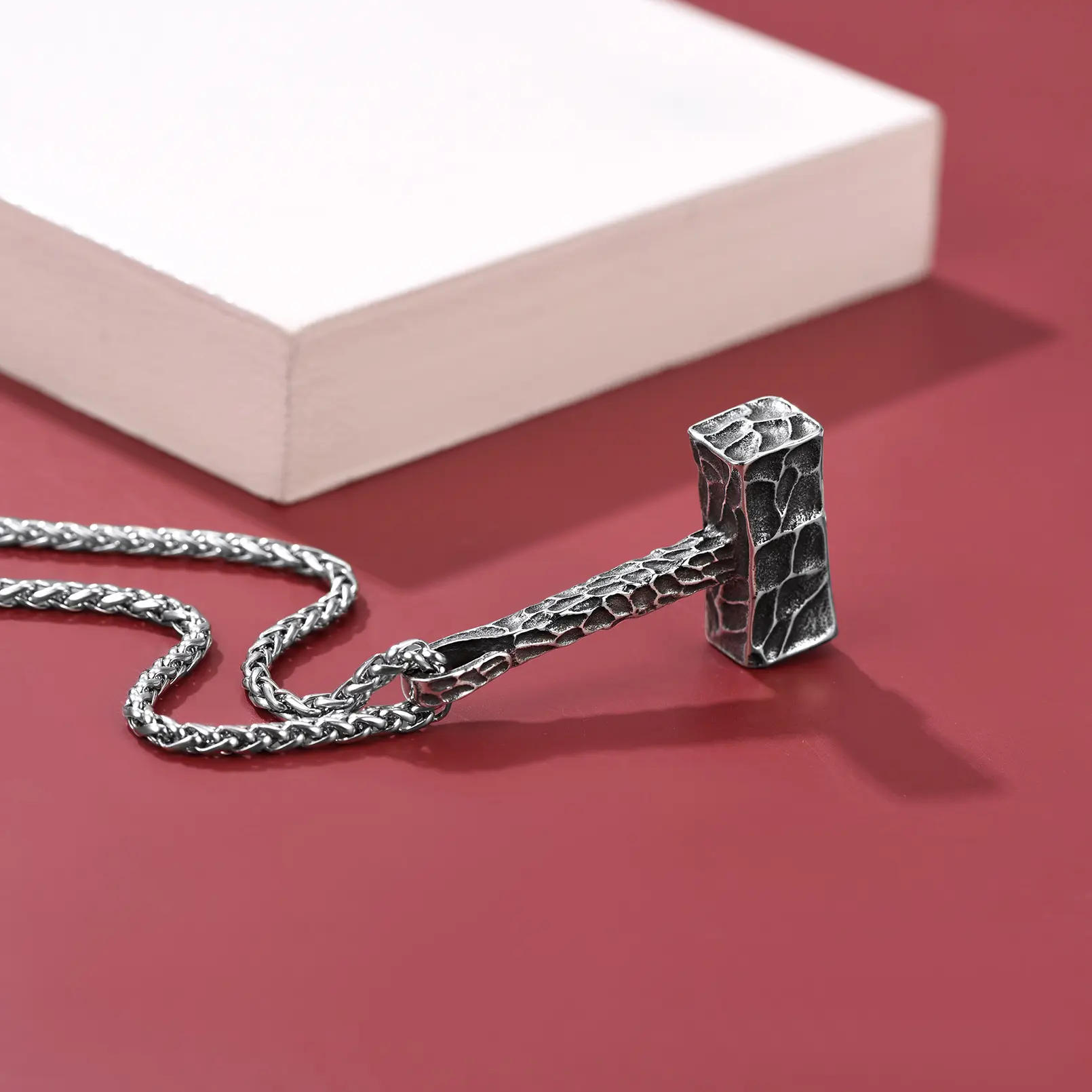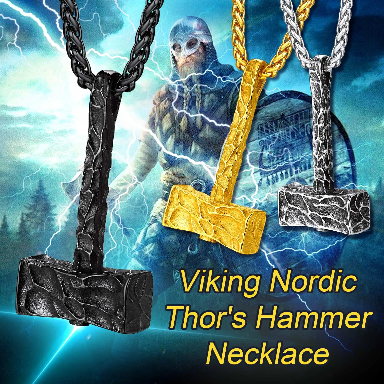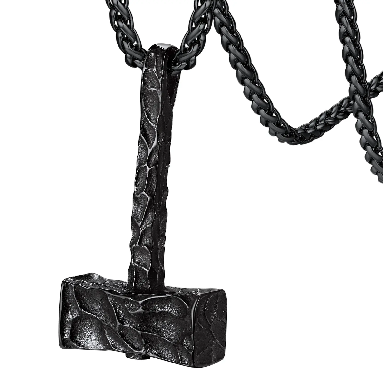 ·Norse Mythology Mjolnir Necklaces: Dangling below the wheat chain is the thor's hammer pendant that is glitterring with shine capturing attention from all around. Mammen style carved on hammer adds eye-catching sparkle to any ensemble of yours.
