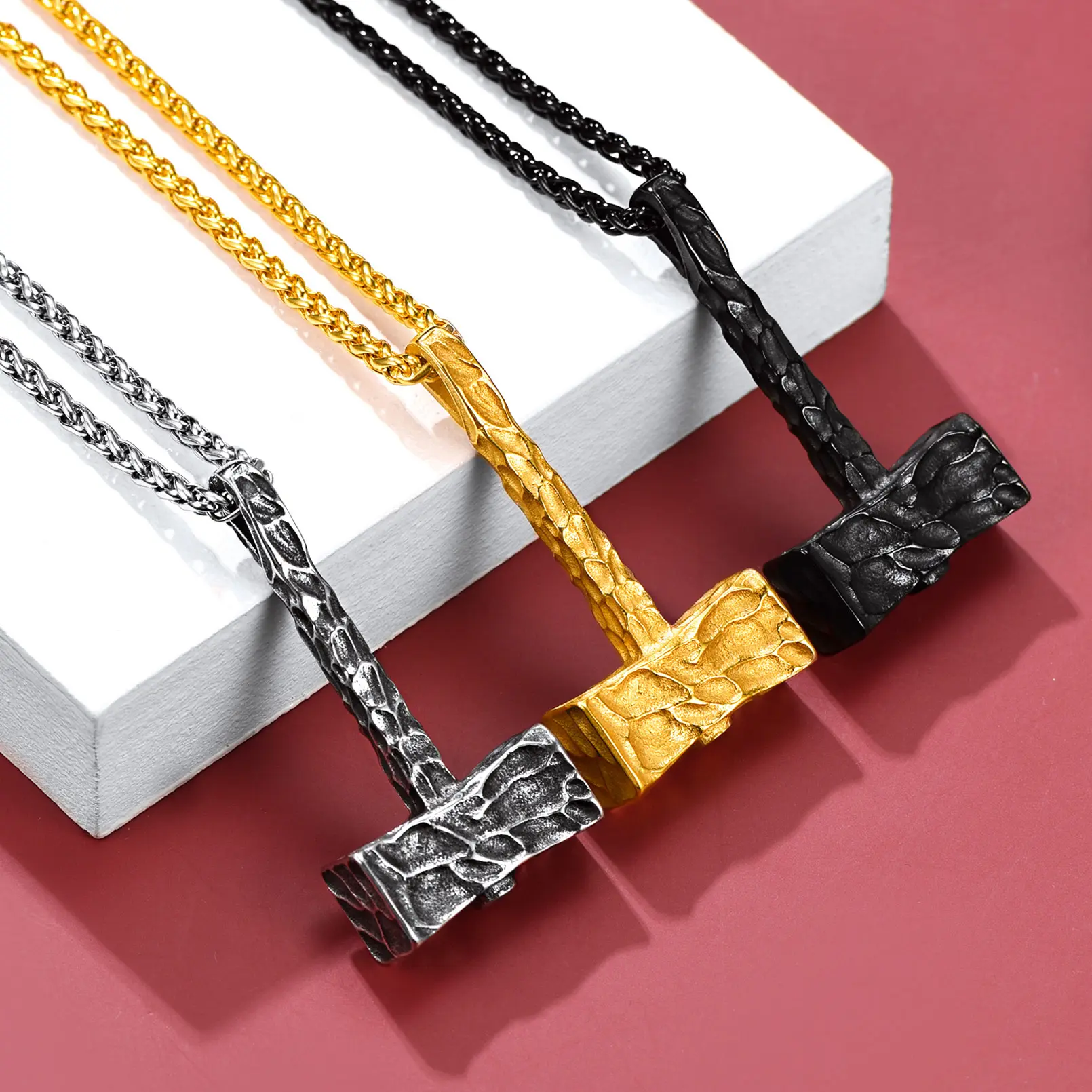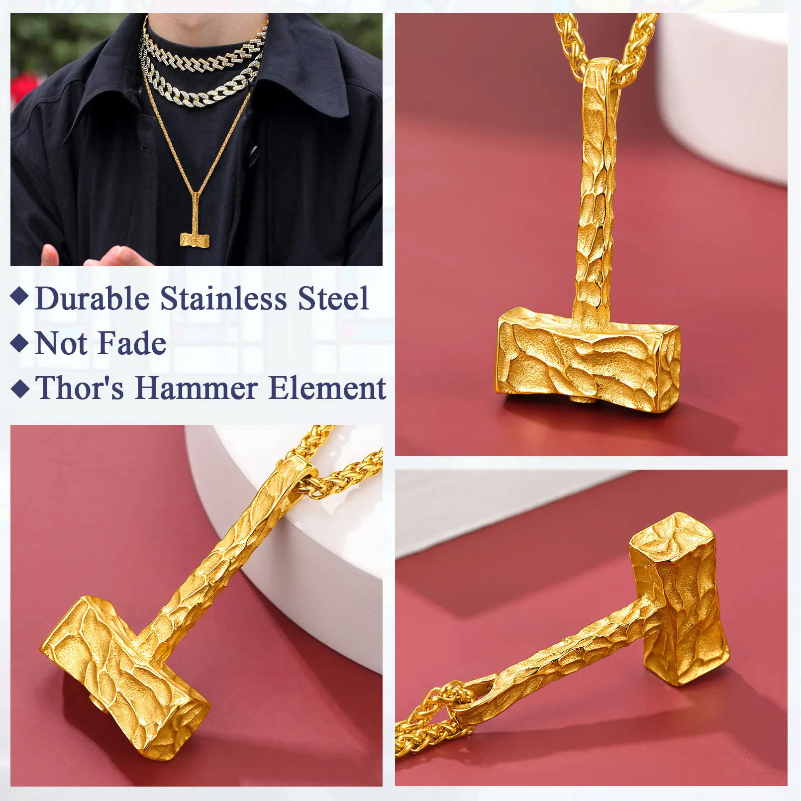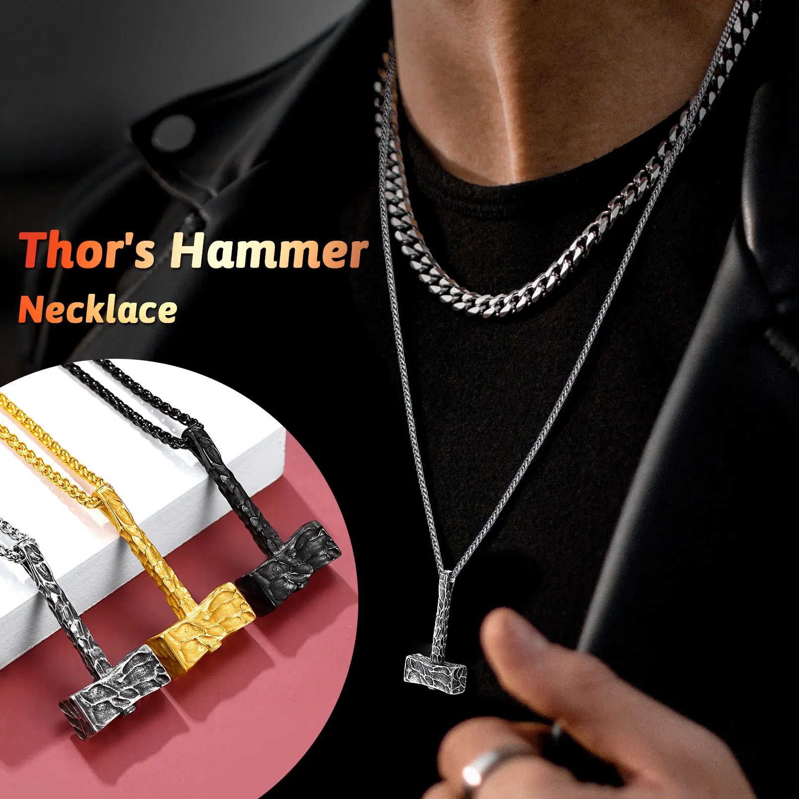 ·Norse Mythology Mjolnir Necklaces: Dangling below the wheat chain is the thor's hammer pendant that is glitterring with shine capturing attention from all around. Mammen style carved on hammer adds eye-catching sparkle to any ensemble of yours.