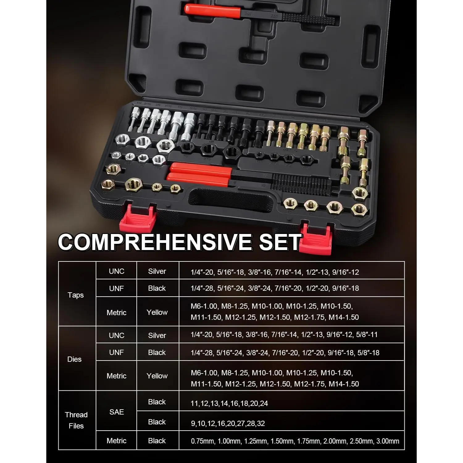 PROFESSIONAL PACKAGE: Comes with a color-coded storage case to keep tools neatly arranged. Package include:3 x thread restorer files, 24 x thread chaser taps, 22 x thread chaser dies
