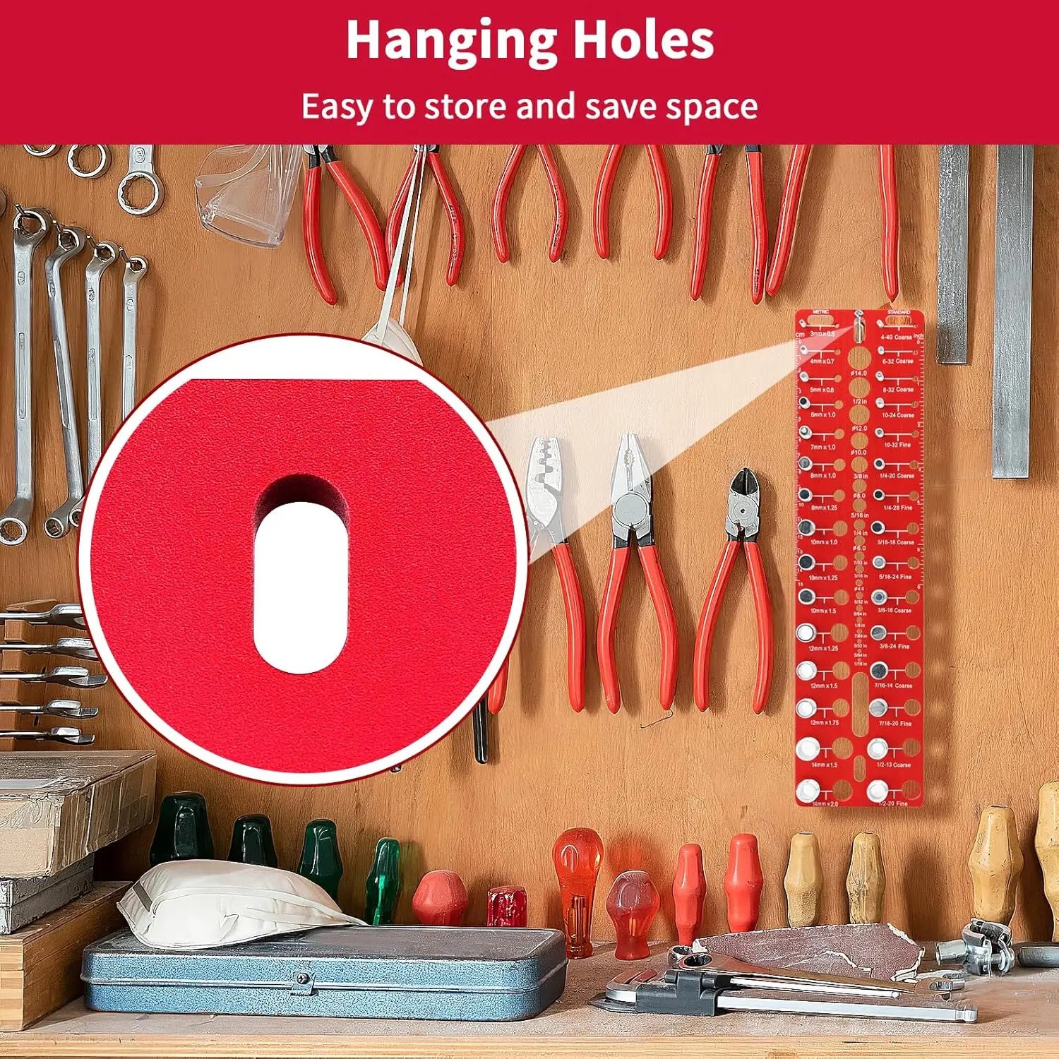 ·Easy-to-read Bolt Size Finder: The bolt identifier board is designed with white lettering on a red background and durable laser-etched inch and centimetre scales on the edges of the bolt sizes and thread gauges for clear and easy reading, making identification of a wide range of thread sizes quick, accurate and easy