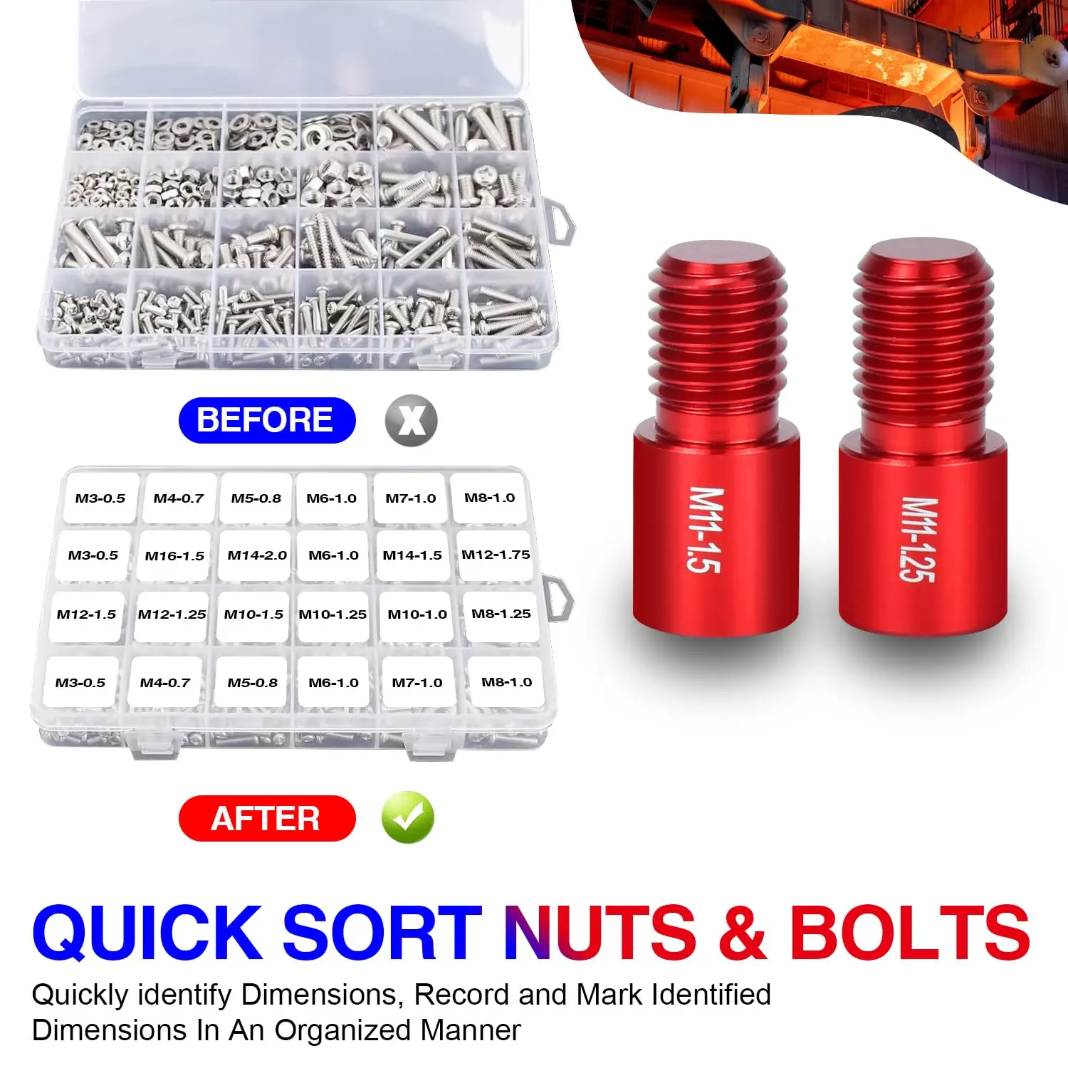 This bolt and nut identifier gauge offers three distinct ways to read sizes clearly—through engraved markings on the gauges, easy-to-read stickers on the foam storage, and color coding (blue for standard sizes and red for metric), ensuring you have multiple options at hand.