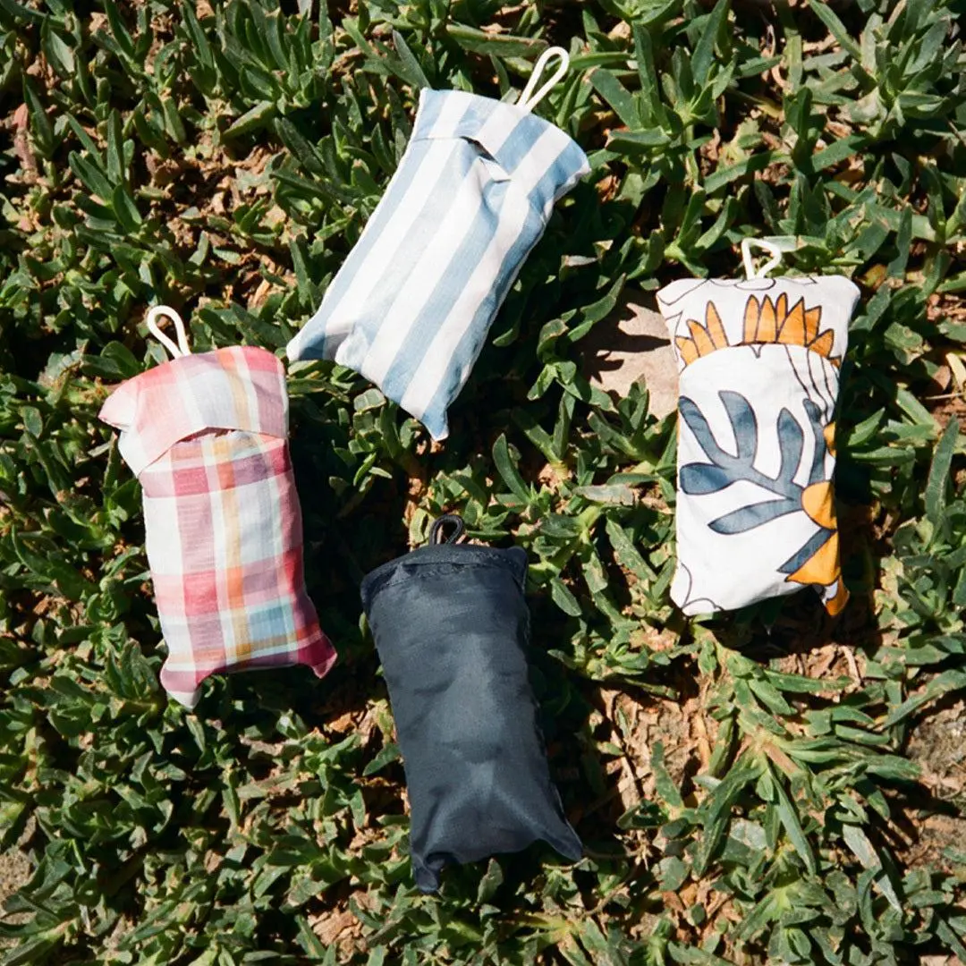 The Thread® Market Tote is a stylish and functional reusable shopping bag designed for convenience on the go. Made from durable, lightweight materials, this tote easily folds into its own compact pouch, making it perfect for stashing in your car, backpack, or purse. Ideal for grocery runs, market strolls, or daily errands, it offers ample space without bulk. • Nylon ripstop material • Reusable • Packs into itself Dimensions: Length: 15 in (40 cm) Height: 15 in (40 cm) Depth: 7 in (17 cm) Handles: 13 in (34 cm) long, 3 in (8 cm) wide Packed: 6 in (15 cm) x 3.5 in (9 cm) cylinder