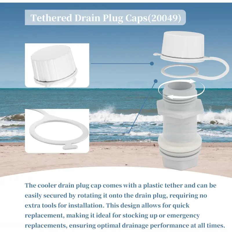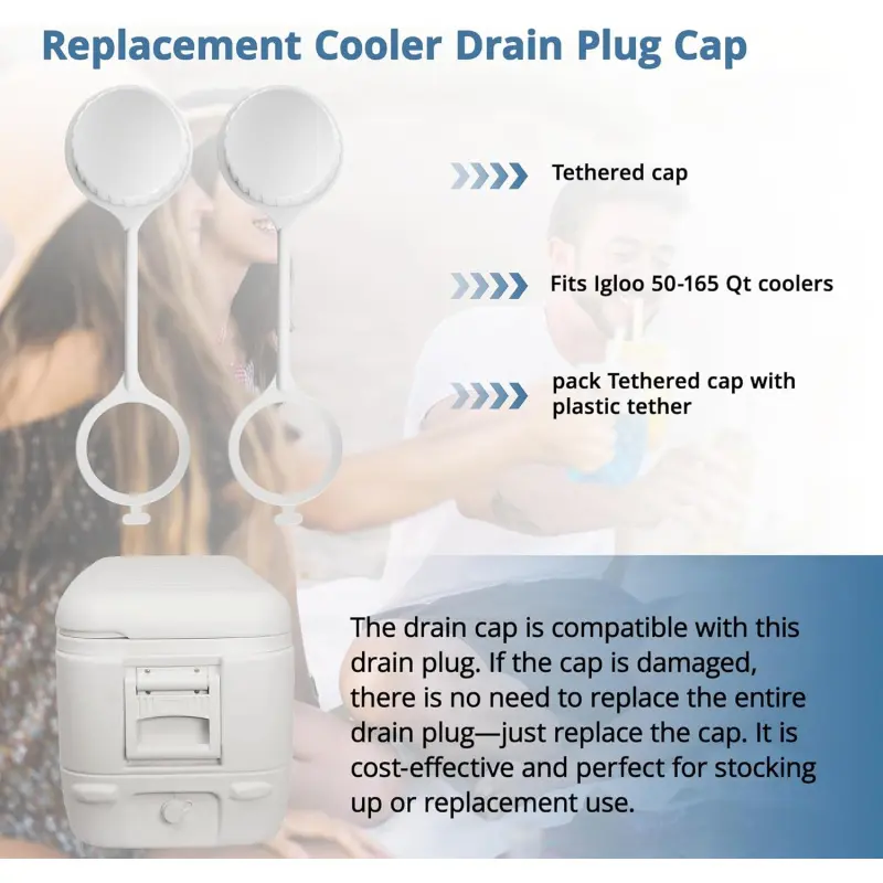 Threaded Drain Plug Caps with Plastic Tether for Cooler,Compatible with Igloo 50-165 Qt Coolers,Cooler Replacement Parts-2 Pack