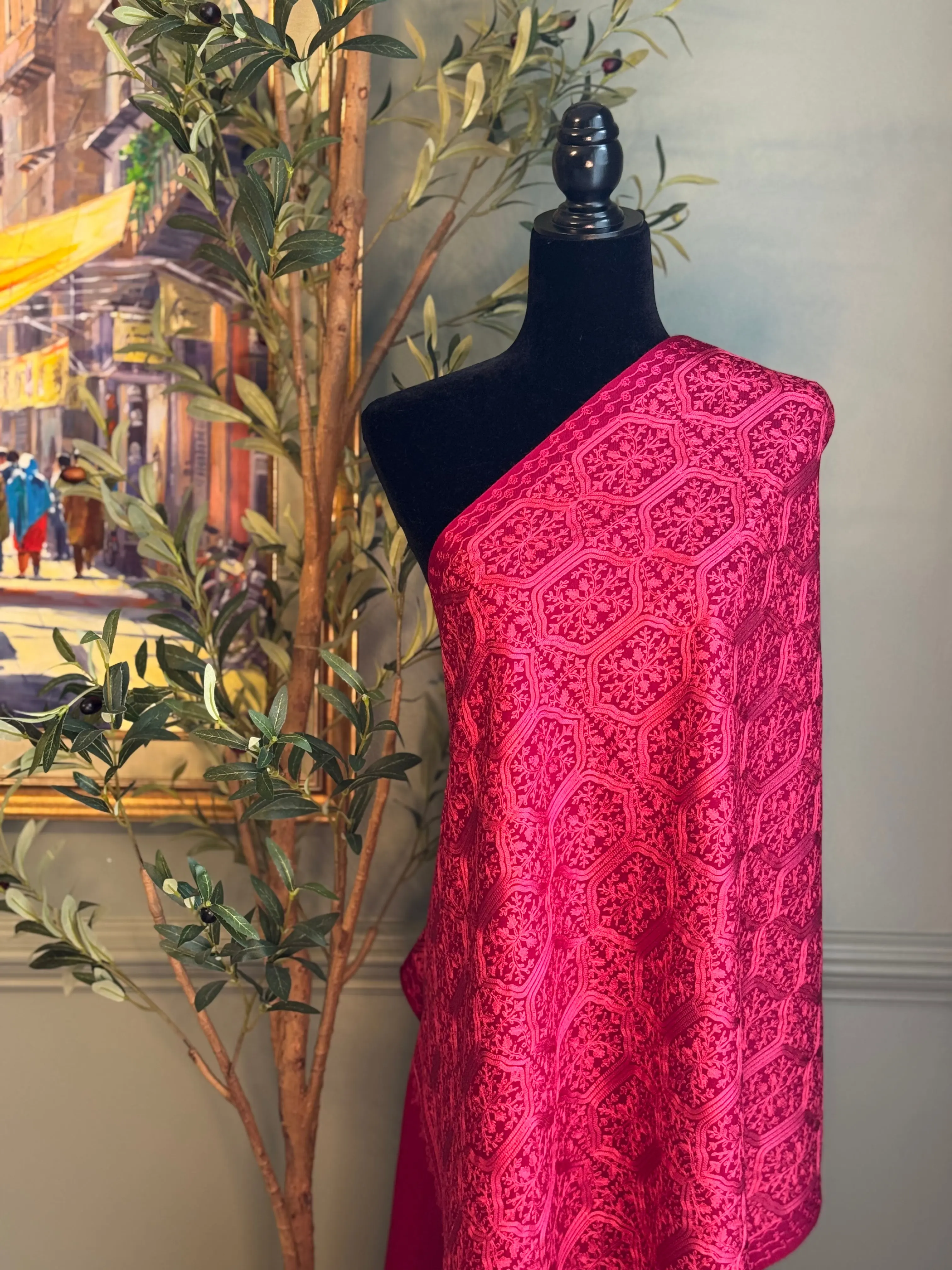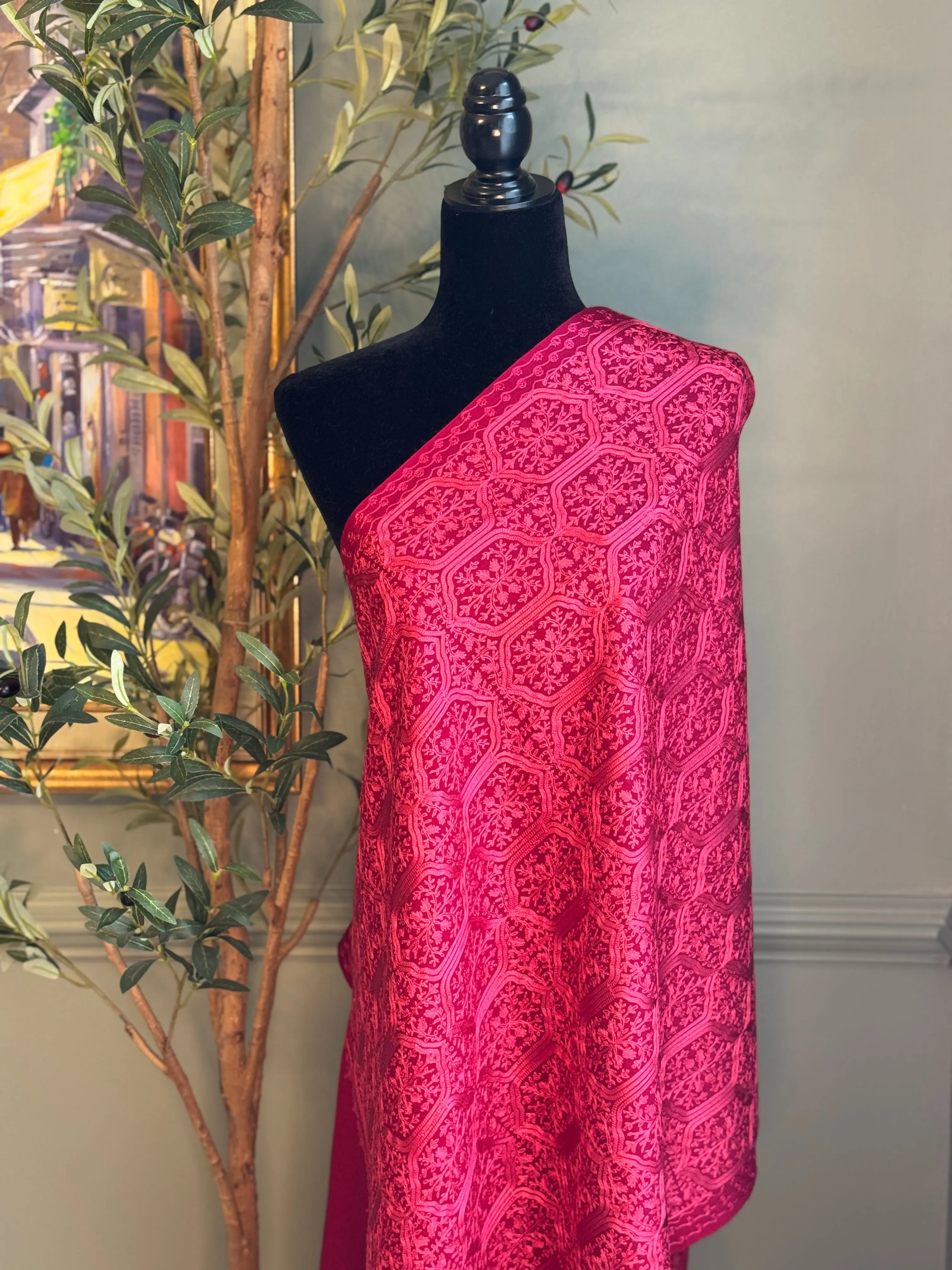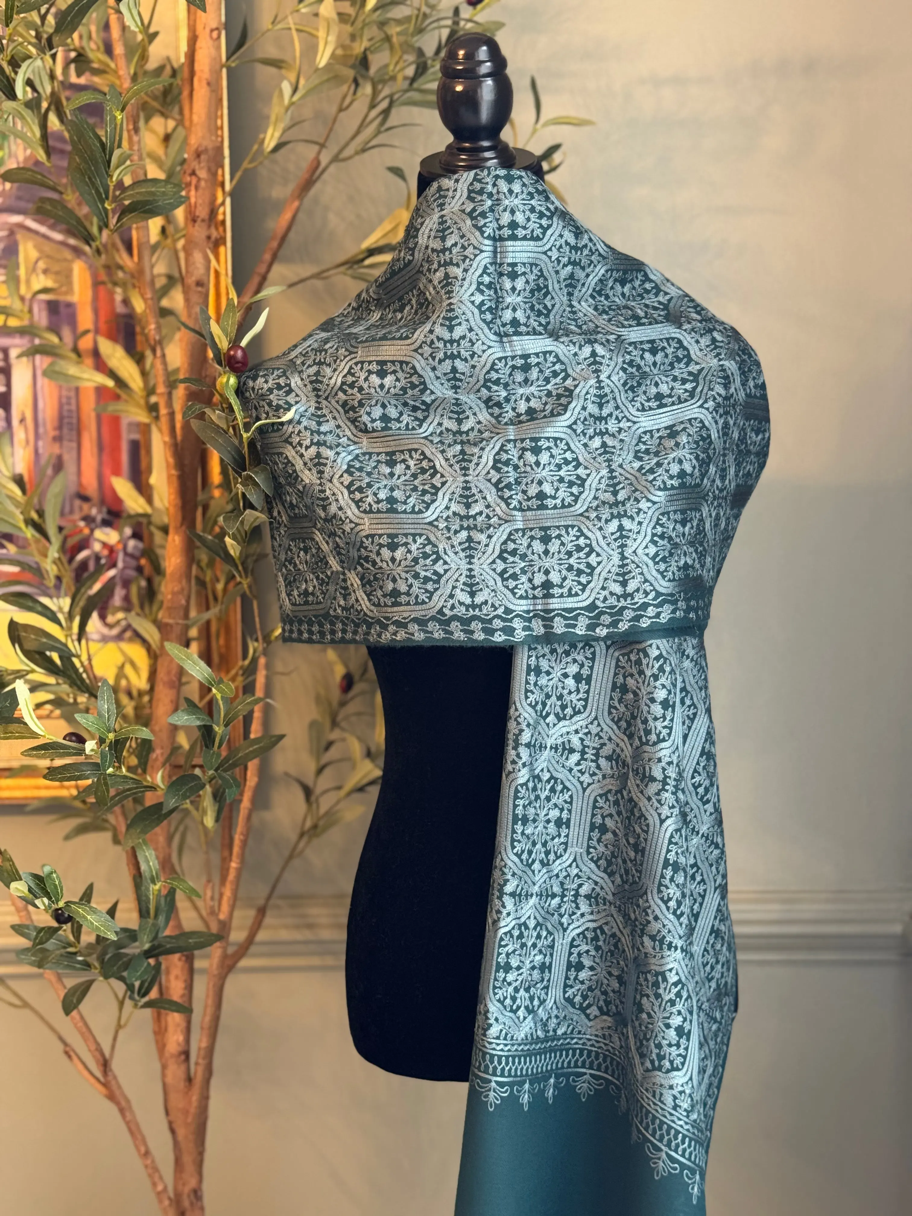 Threaded Grid combines year-round comfort and style with its soft, lightweight fabric that suits every season. Featuring an elegant floral pattern on one side and delicate threadwork on the reversible back, this wrap adds a versatile, sophisticated touch to your wardrobe. Feel confident and polished no matter the weather with Threaded Grid.