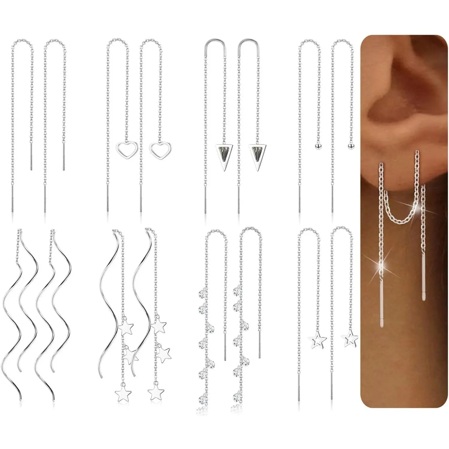 ·Type:Heart Threader Earrings,Ball Threader Earrings,Bar Threader Earrings,Star Threader Earrings,Triangle Threader Earrings,Wave Threader Earrings,Rhinestone Tassel Threader Earrings