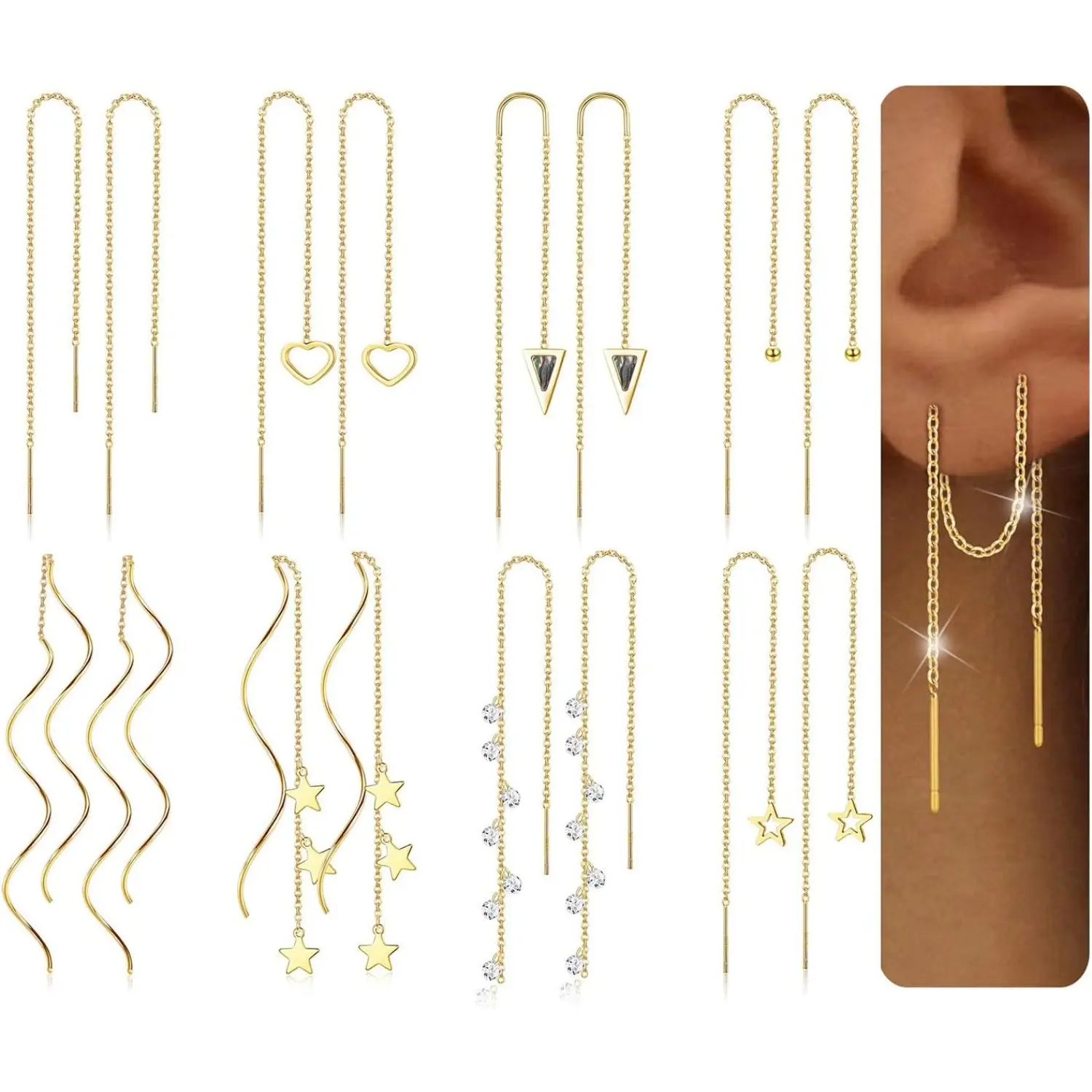 ·Pakeage:8 Pairs Threader Earrings in A Set