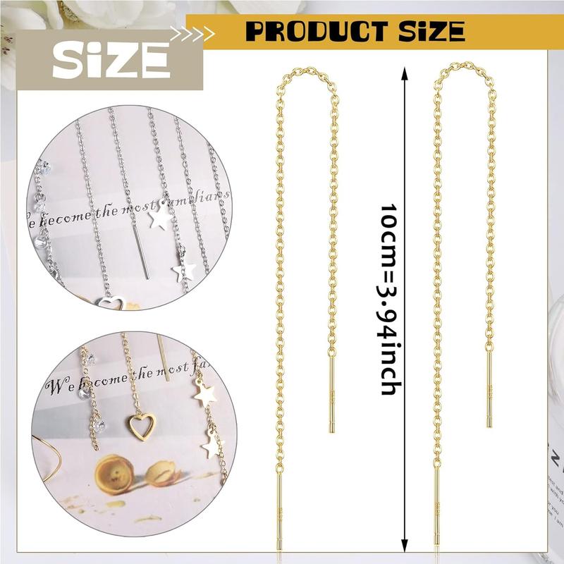 ·Material:All these long chain earrings are made of 316L stainless steel,safe and not easy to fade.high-polished surface and strict electroplating process, smooth and shiny metal wire earrings,low-key gorgeous.Unique and personalized wearing and matching make you glamorous!