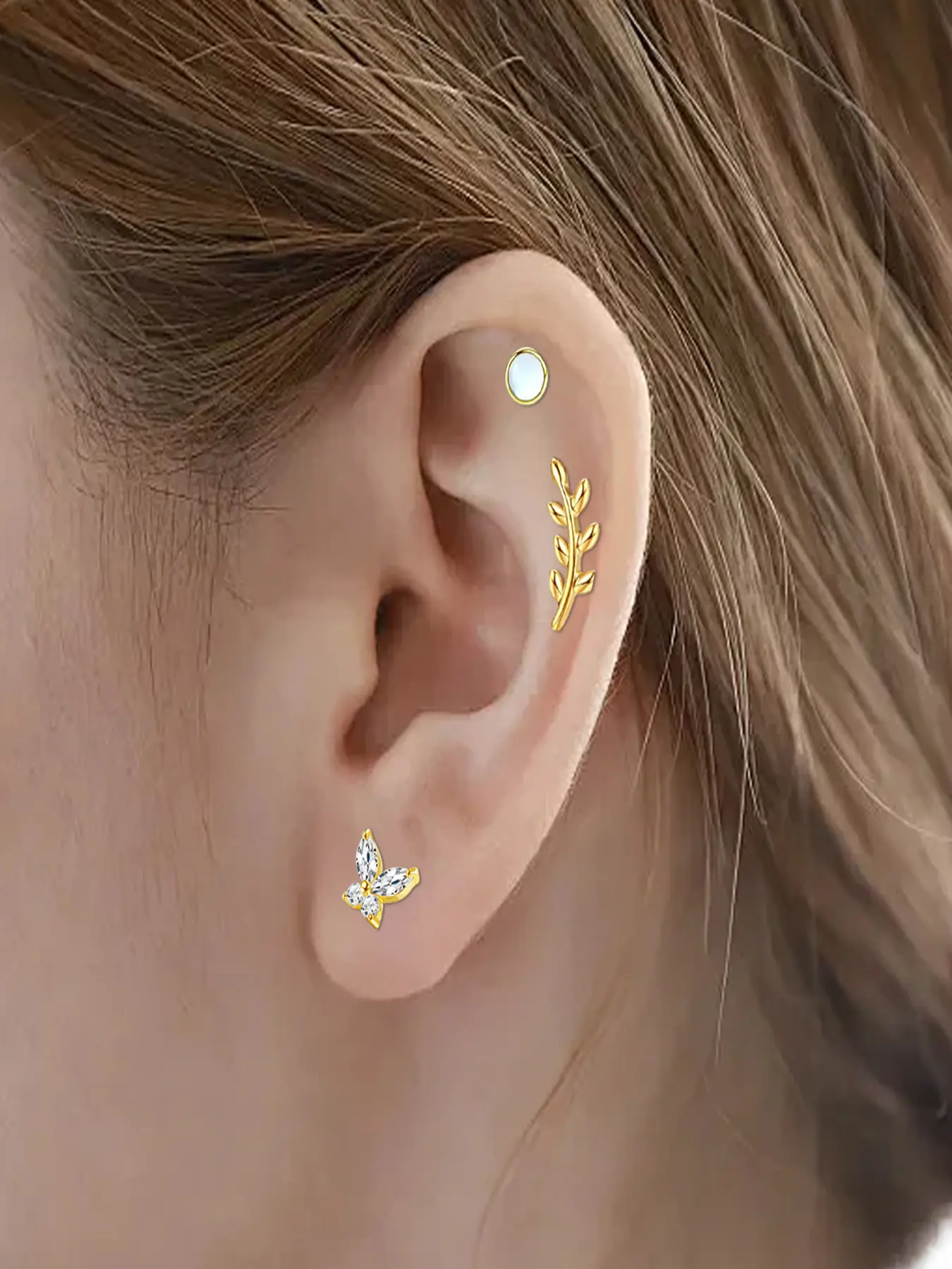 No thread, pushed into the needle, comfortable to wear, the front end of the product is small and exquisite, the bottom disc is 0.4CM, and the pole length is 0.8CM.