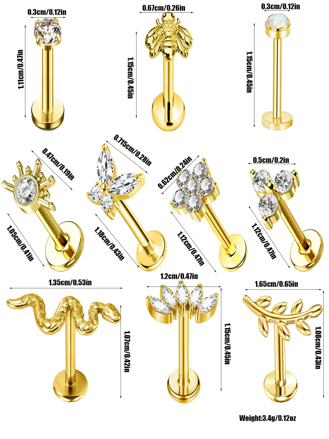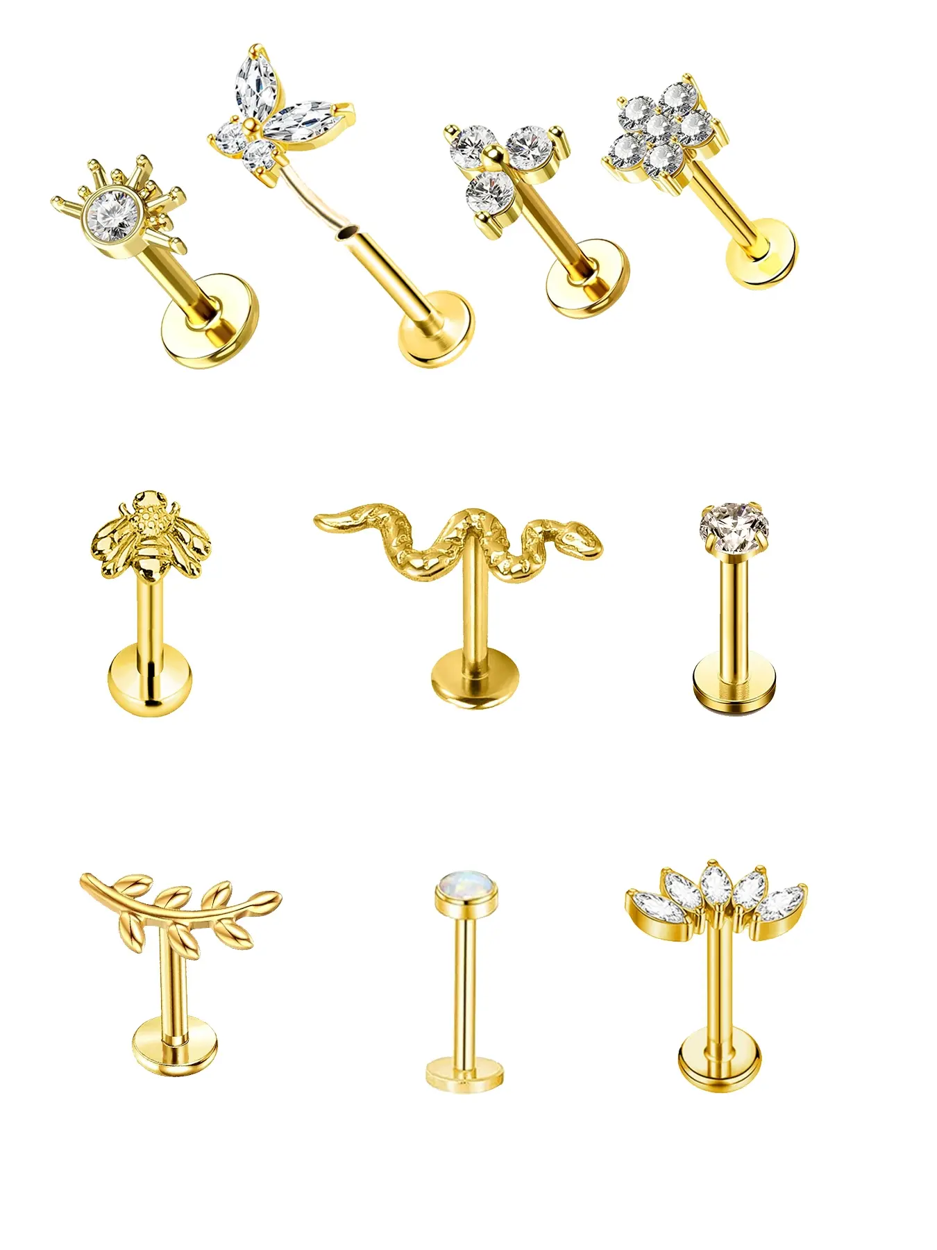 20g Threadless Push-Back Stud Earrings, Small Cz Flat Back Design, Suitable for Cartilage, Lobe, Women Conch Jewelry, Fashion Cubic Zirconia Ear Piercing Accessory, Non Tarnish Jewelry