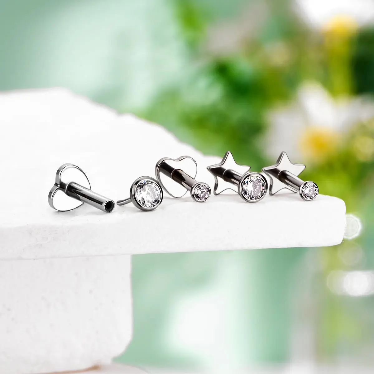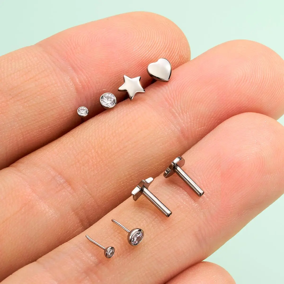 5. Oufer 16G Threadless Push Pin Star Heart Flat Back Bezel CZ Cartilage Nose Lip Stud Earring
