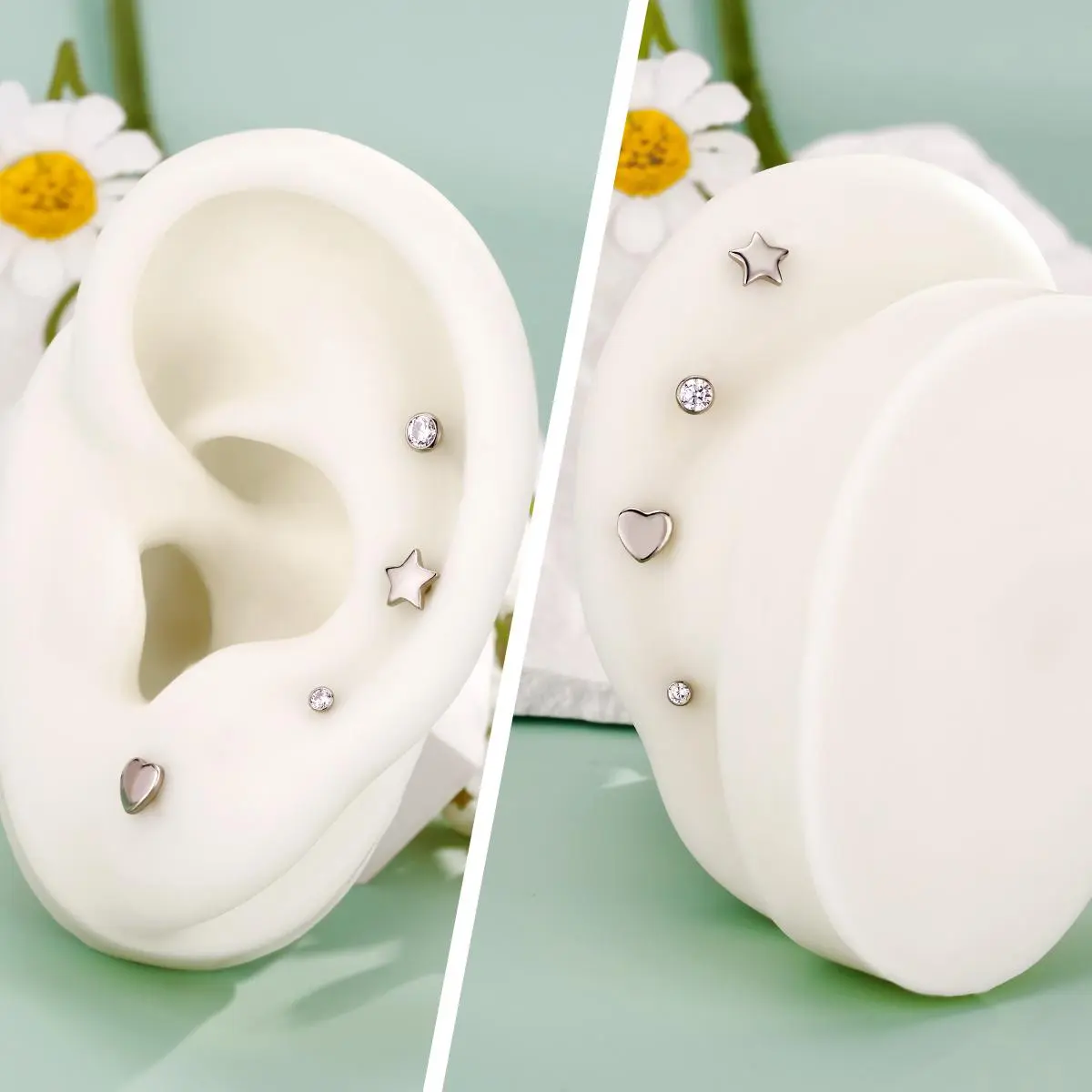Upgrade your accessory collection with the Oufer 16G Threadless Push Pin Star Heart Flat Back Cartilage Nose Lip Stud Earring.