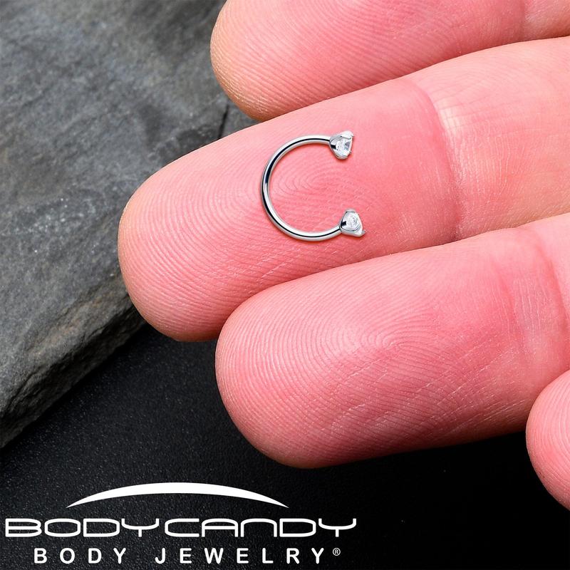 Double CZ Titanium Horseshoe Nose Ring. Made from hypoallergenic, implant-grade titanium, this nose ring is designed to be lightweight, durable, and perfect for those with sensitive skin.