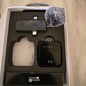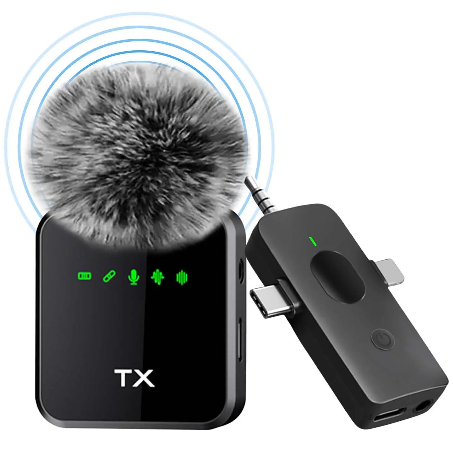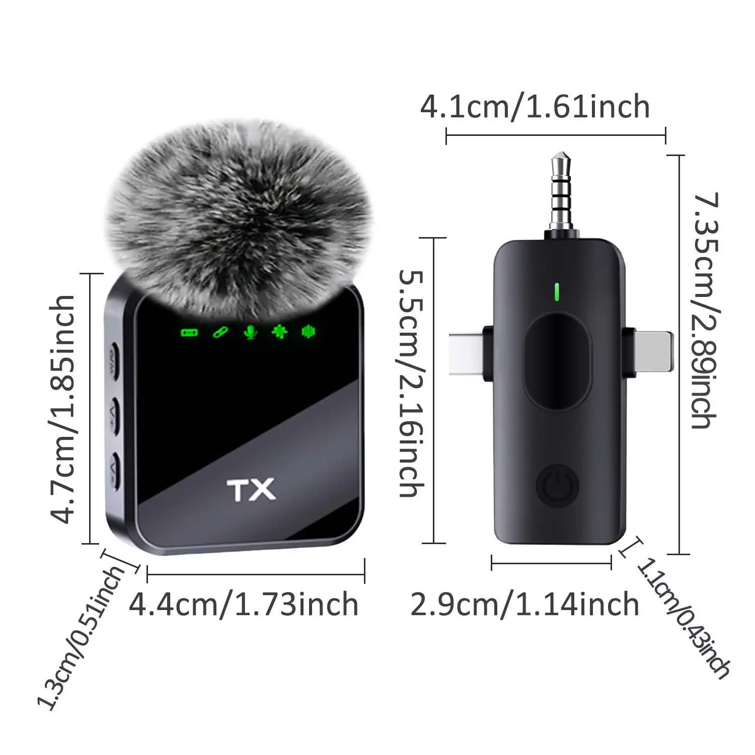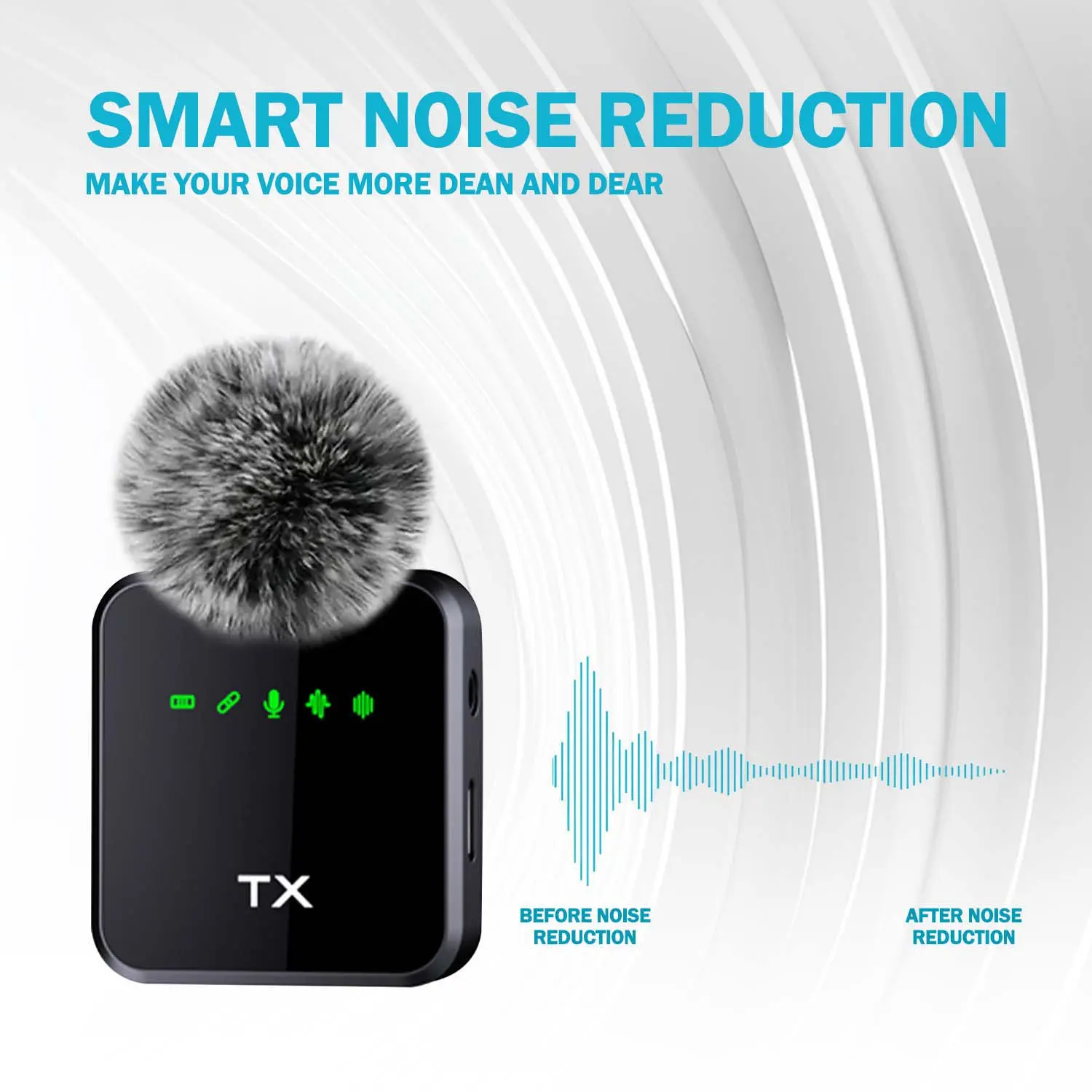 Three in one wireless lavalier microphone suitable for iPhone and Android, clip on noise reduction design, capacitive microphone, long battery life, artificial intelligence noise reduction, suitable for video blogging, Usb rechargeable mic
