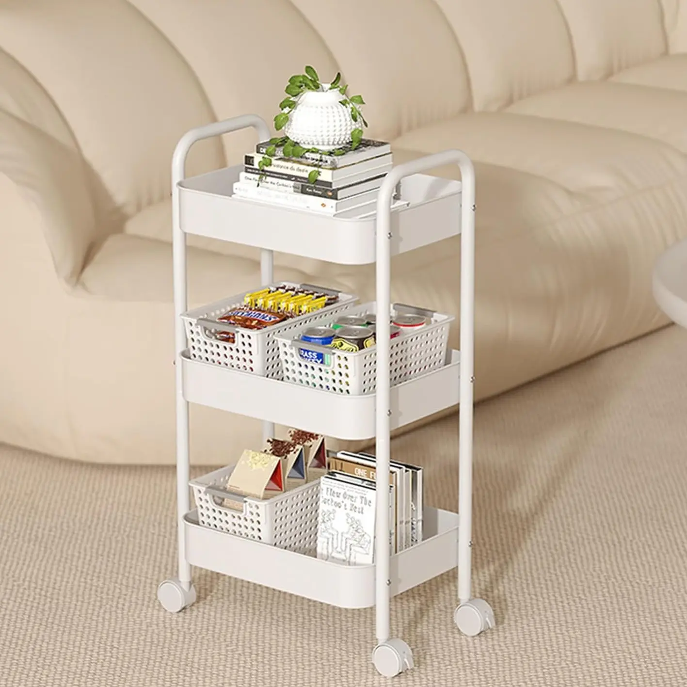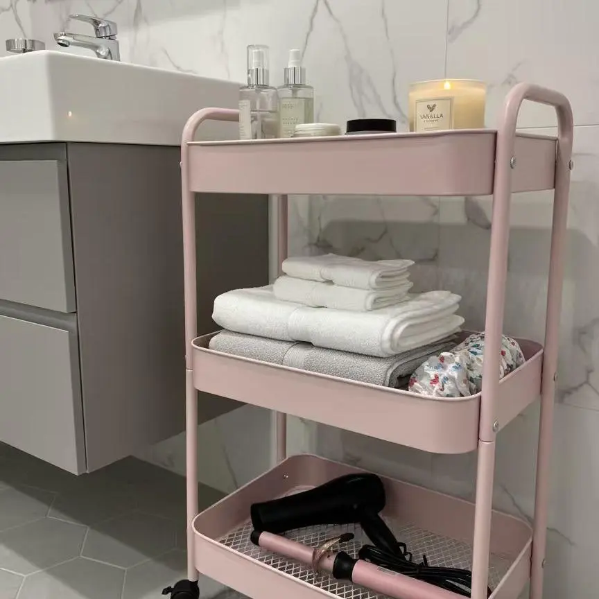 Three-layer metal multi-functional rolling trolley with lockable casters, easy to assemble, suitable for offices, bathrooms, kitchens, and dressing rooms. space-saving storage Miniature Storage home organization rack kitchen bathroom baby organizer