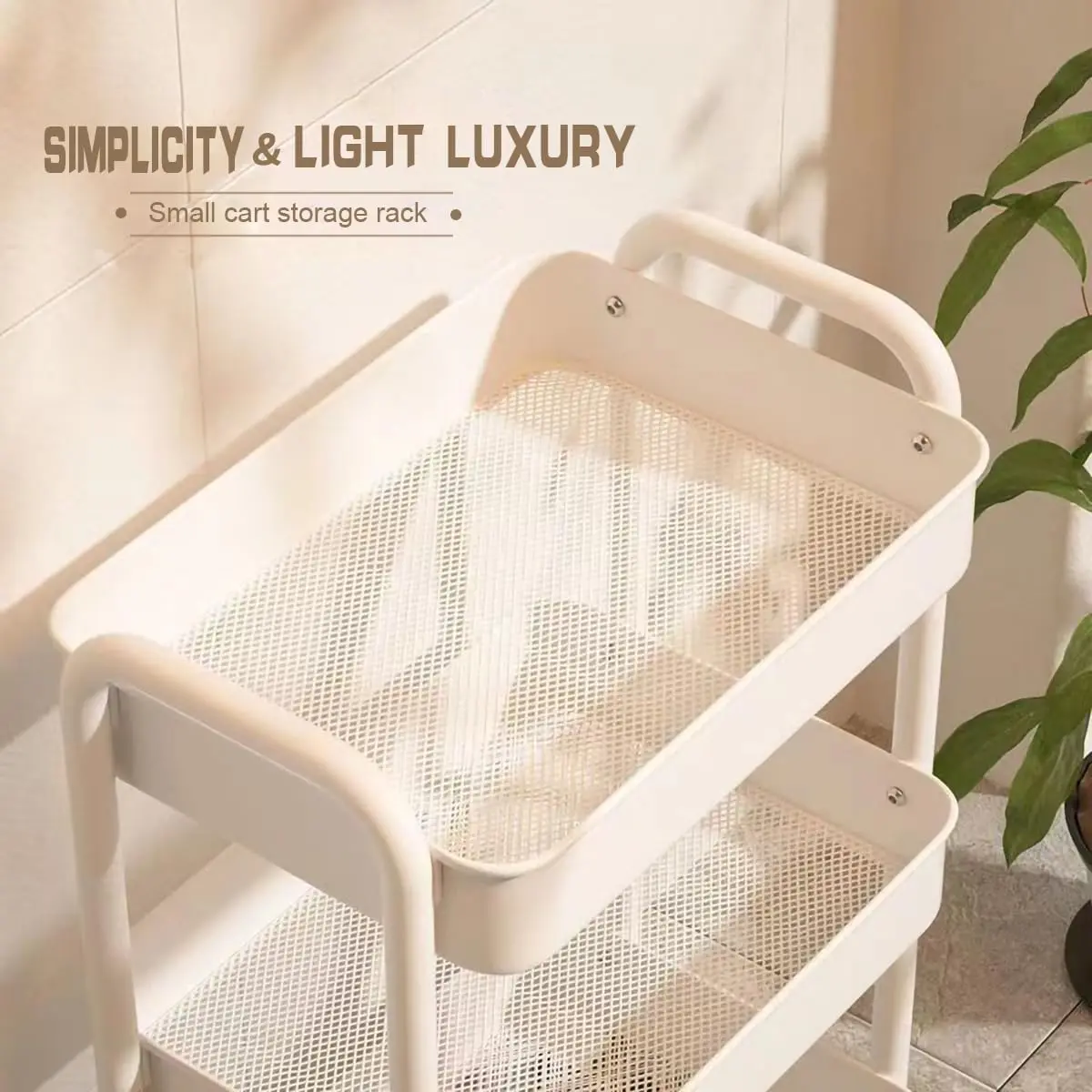 【Multi-functional Mobile Cart】This metal mesh mobile cart features a simple and elegant design, keeping your room looking neat and tidy. It's suitable for various locations including offices, kitchens, bedrooms, dressing rooms, and bathrooms.