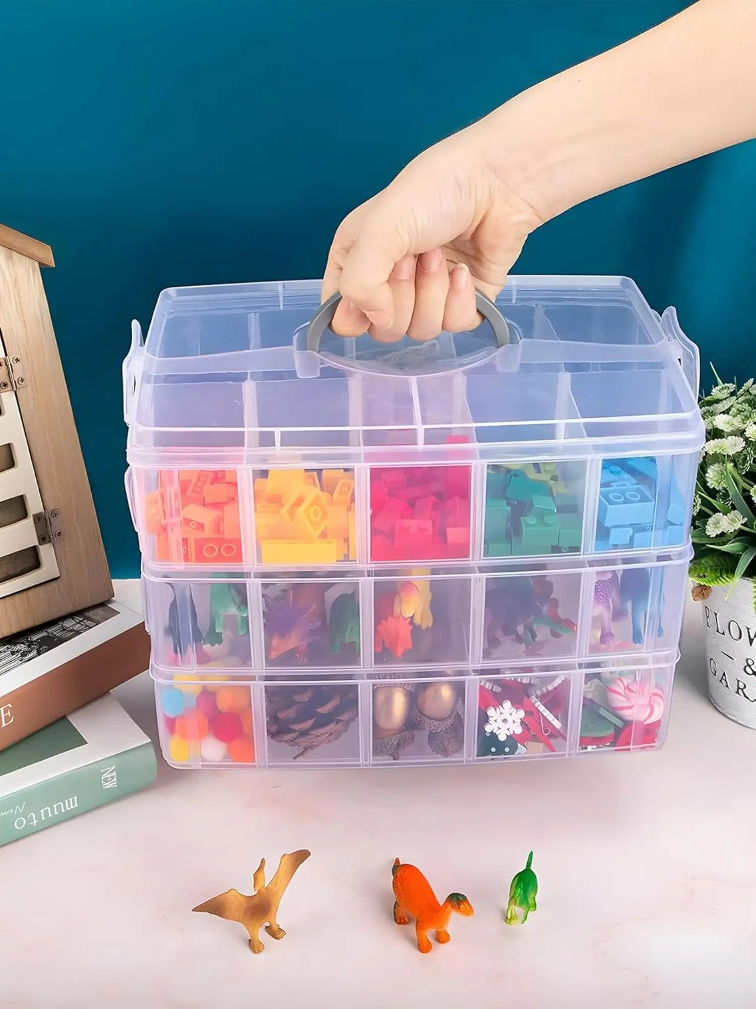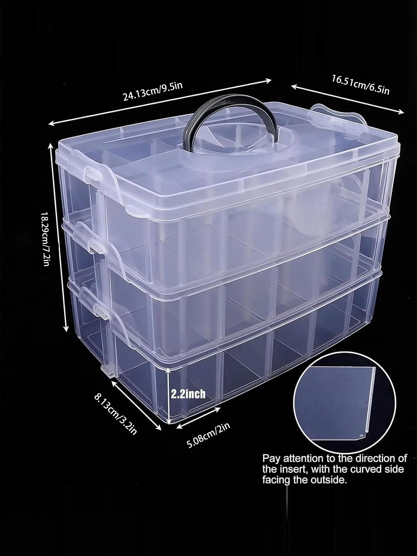 Three-Layer Stackable Storage Container Box with Dividers, 30 Compartments, Bead Organizer for Art Crafts, Jewelry Storage Solution