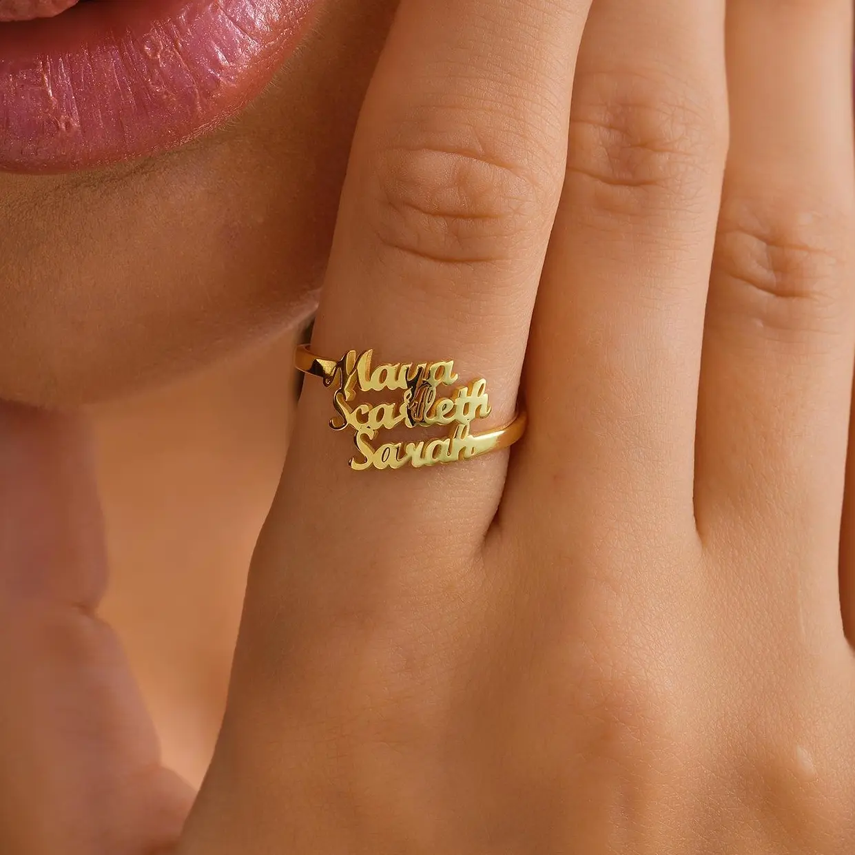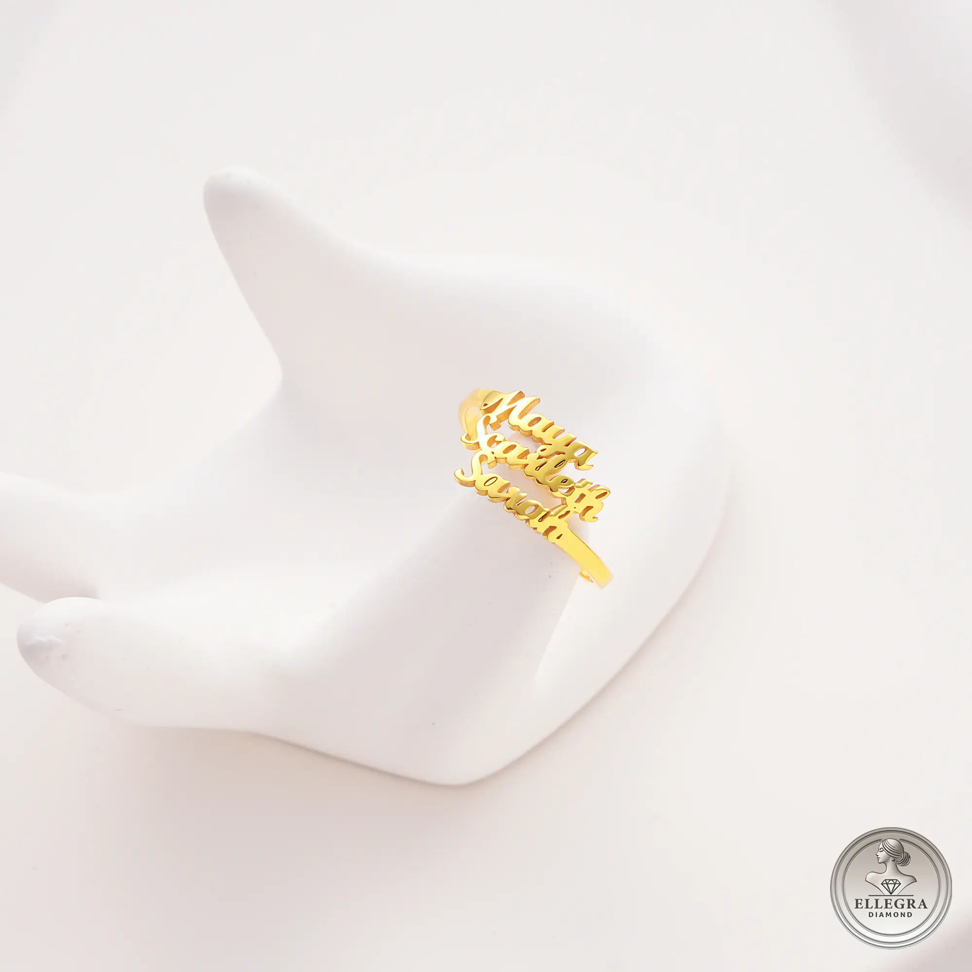Elegant, meaningful, and beautifully symbolic our Three Name Ring is a celebration of love, family, and connection. Each triple name ring is meticulously handcrafted to feature up to three meaningful names, creating a piece that’s both personal and timeless. Whether you’re honoring children, partners, or loved ones, this multiple name ring transforms precious memories into a wearable keepsake. Designed with a sleek, making it a cherished name customized ring for any occasion.