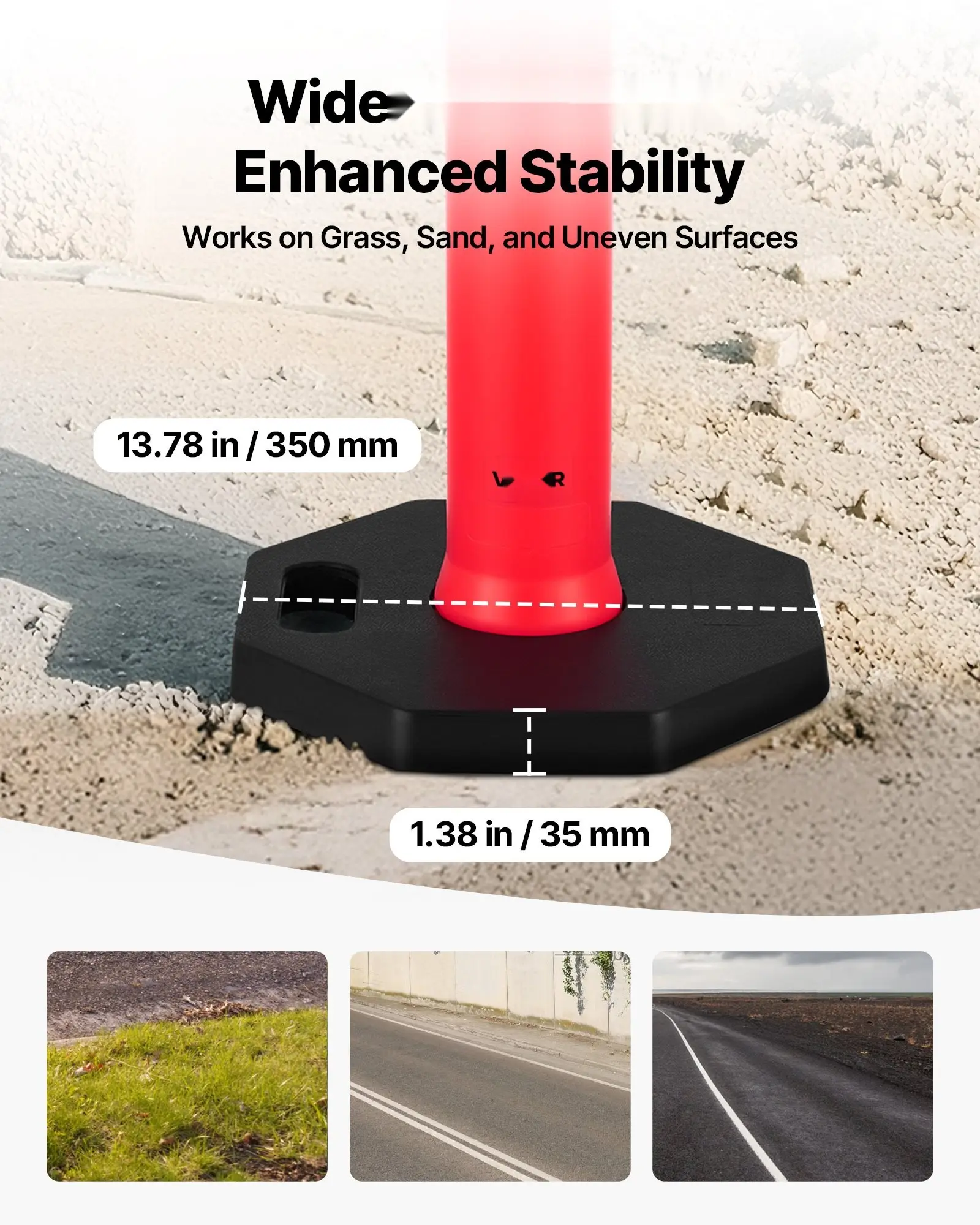 ·Extra-Wide Octagonal Base: With its octagonal widened rubber base, our traffic posts provide a large ground contact area, enhancing wind resistance and preventing tipping, especially in outdoor construction areas and open parking lots, which are more vulnerable to strong winds
