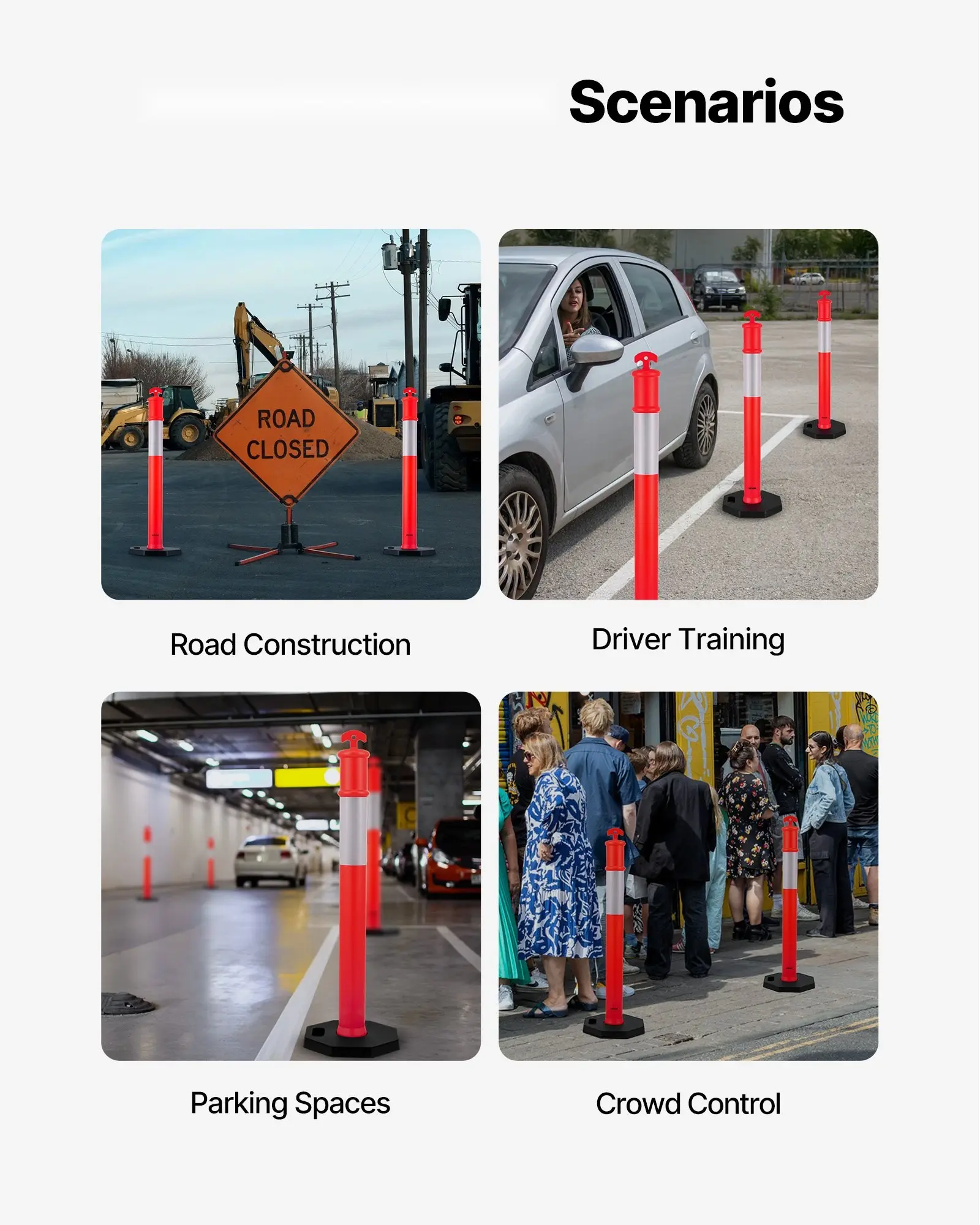 ·Versatile Applications: Widely suitable for road construction sites, garage entrances, commercial parking spaces, and crowd control areas. By connecting the delineator posts with chains or placing them individually, you can quickly create a security zone or guide pathway